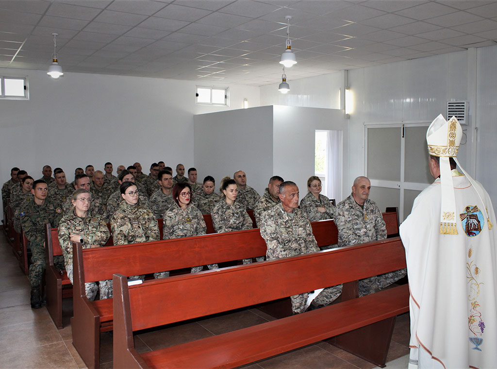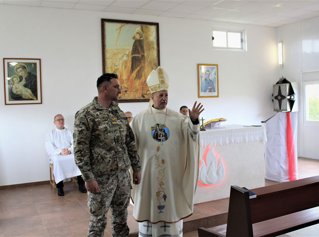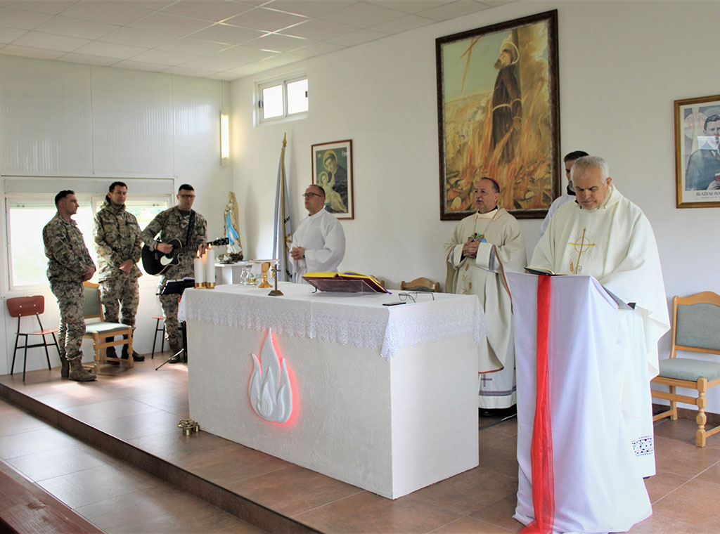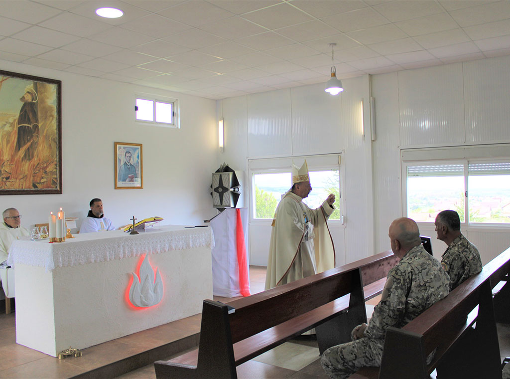 Tom prigodom biskup Miro slavio je svetu misu u vojnoj kapeli posvećenoj sv. Nikoli Taveliću. Uz biskupa su koncelebrirali livanjski vojni kapelan fra Mario Ostojić i vojni kapelan iz Vidoša fra Ćiro Lovrić, koji su uime vojnika, dočasnika i časnika, zajedno s pukovnikom Vjekoslavom Puharićem, poželjeli dobrodošlicu biskupu.