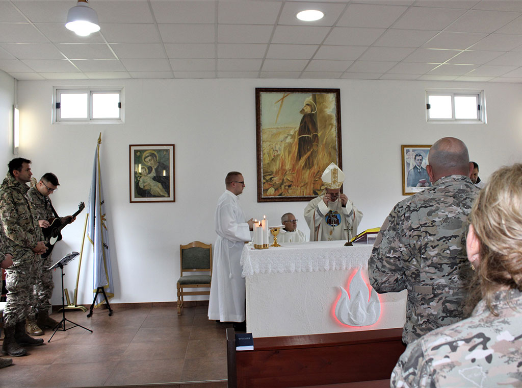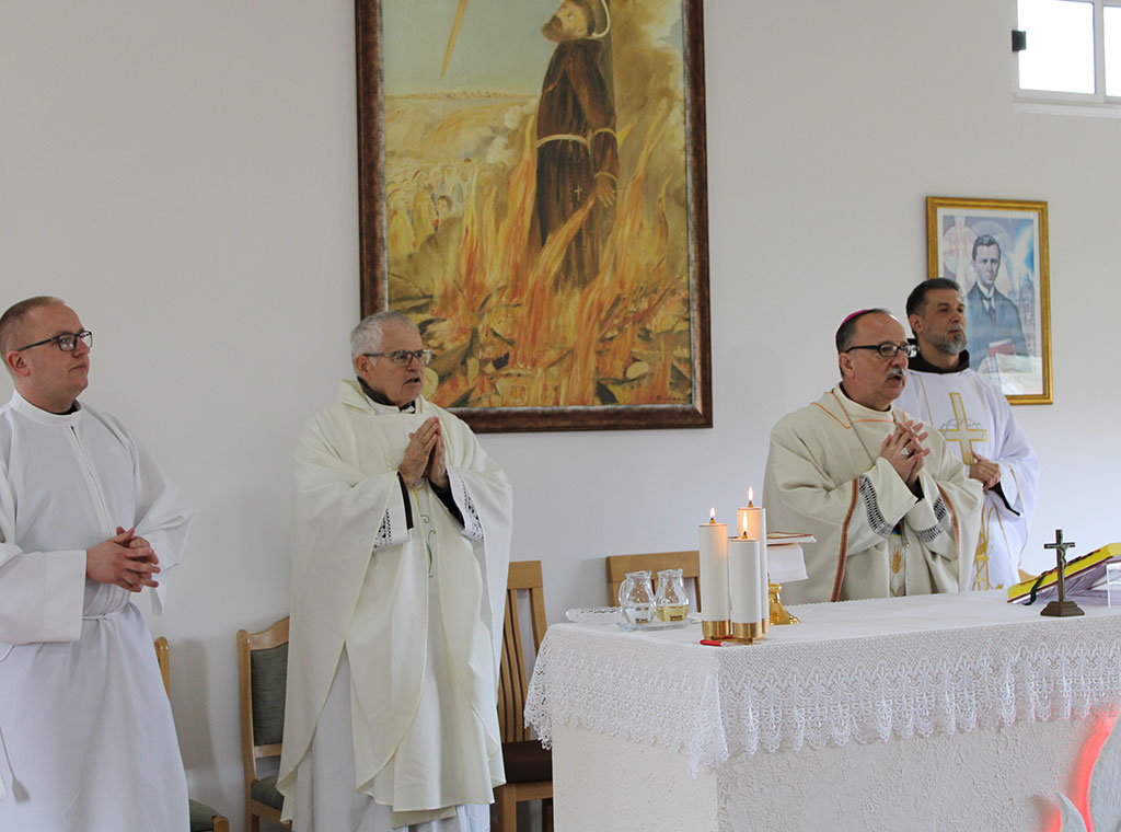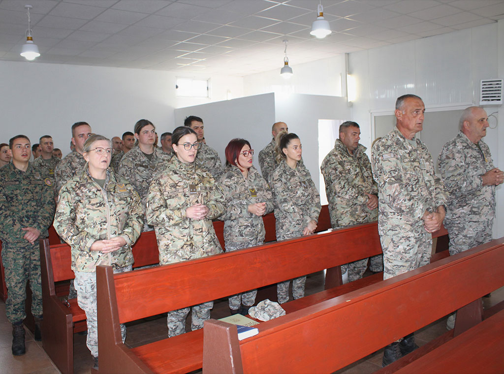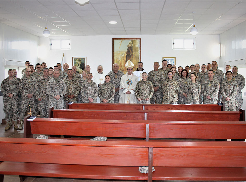 Tom prigodom biskup Miro slavio je svetu misu u vojnoj kapeli posvećenoj sv. Nikoli Taveliću. Uz biskupa su koncelebrirali livanjski vojni kapelan fra Mario Ostojić i vojni kapelan iz Vidoša fra Ćiro Lovrić, koji su uime vojnika, dočasnika i časnika, zajedno s pukovnikom Vjekoslavom Puharićem, poželjeli dobrodošlicu biskupu.