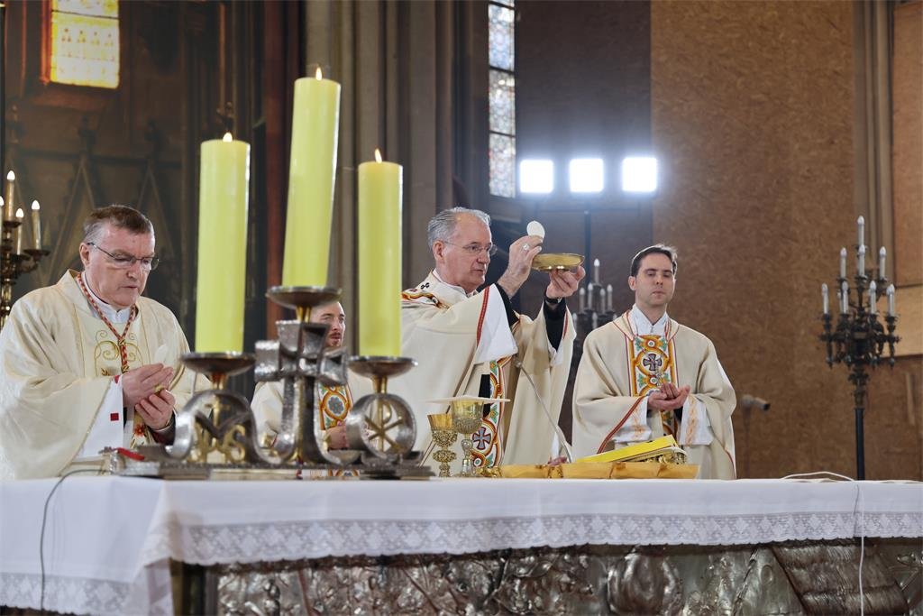 Istaknuvši da se u Uskrslom Kristu susreću istinito, lijepo i dobro: "u njemu, Istina nije ideja, nego svjetlo koje obasjava svakoga čovjeka. U njemu, Dobrota nije moralni ideal, nego živa ljubav koja pobjeđuje zlo. U njemu, ljepota nije privid, nego sjaj Božje ljubavi vidljiv u riječima i ranama Uskrsloga", riječi su kojima je zaključio svoju homiliju nadbiskup Kutleša.