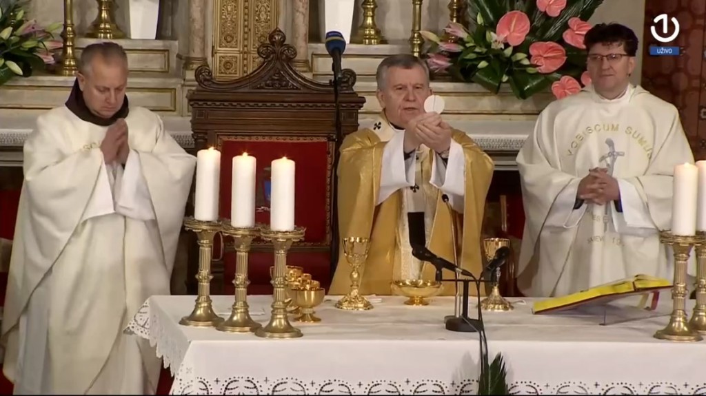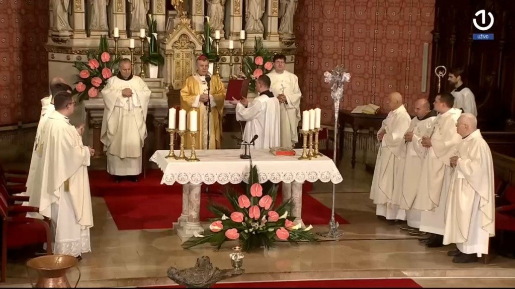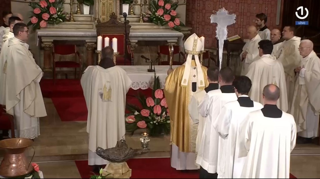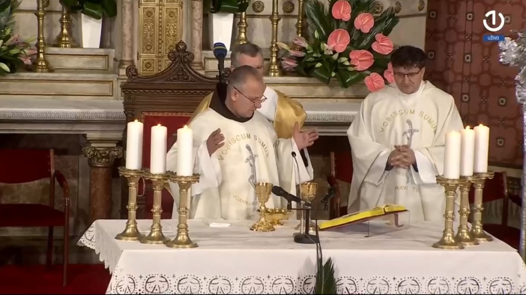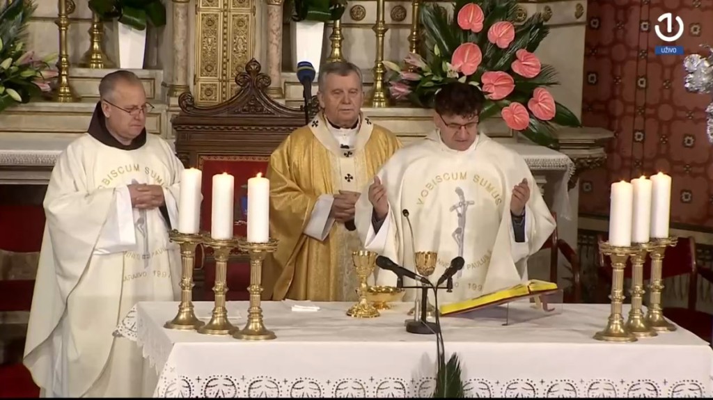 Središnje svečano euharistijsko slavlje na svetkovinu Uskrsa, u nedjelju 5. travnja 2026., u katedrali Srca Isusova u Sarajevu, uz izravni prijenos Radiotelevizije Bosne i Hercegovine te uz praćenje drugih medija, predvodio je vrhbosanski nadbiskup metropolit mons. Tomo Vukšić u zajedništvu s provincijalom Franjevačke provincije Bosne Srebrene fra Zdravkom Dadićem i rektorom katedrale i kanonikom preč. Markom Zubakom te desetoricom svećenika.