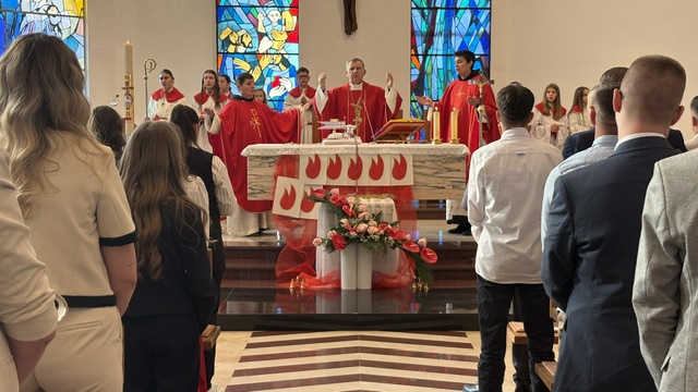 Nakon svečanog dočeka nadbiskupa i susreta s krizmanicima u crkvi uslijedilo je svečano misno slavlje. Uz predvoditelja mise nadbiskupa Vukšića koncelebrirali su župnik ove župe fra Velimir Bavrka te župni vikar fra Silvano Di Benedetto.
