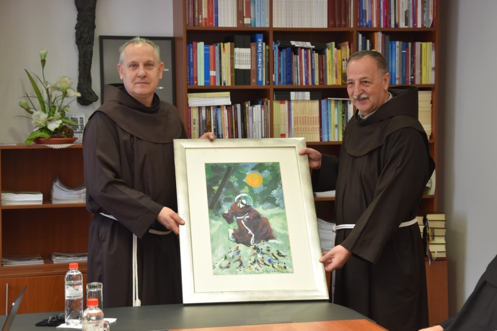 Braća franjevci fra Miri su poželjela mir i dobro i svaki Božji blagoslov u budućoj njegovoj službi te mu za uspomenu darovala umjetničku sliku s franjevačkim motivom. Na koncu je fra Miro zahvalio braći na riječima podrške preporučivši se u njihove molitve kako bi svoju biskupsku službu mogao vršiti Bogu na slavu i na dobrobit povjerenih mu duša. Zaključno je kazao kako će franjevačka zajednica uvijek biti u njegovim molitvama. (kta/fia)