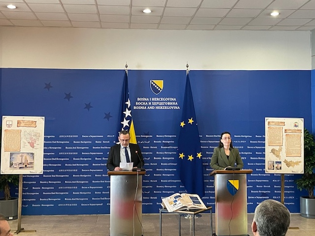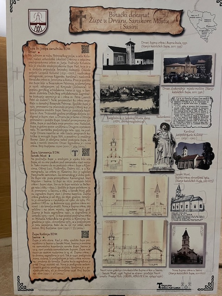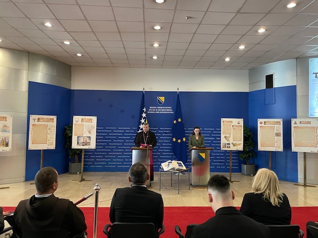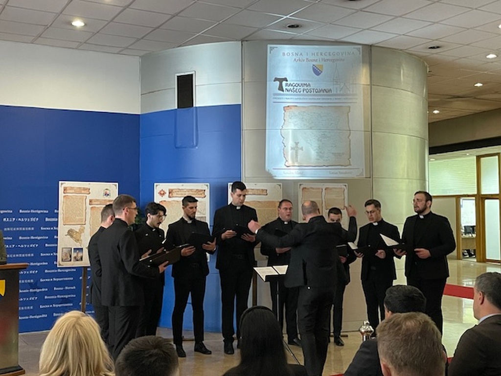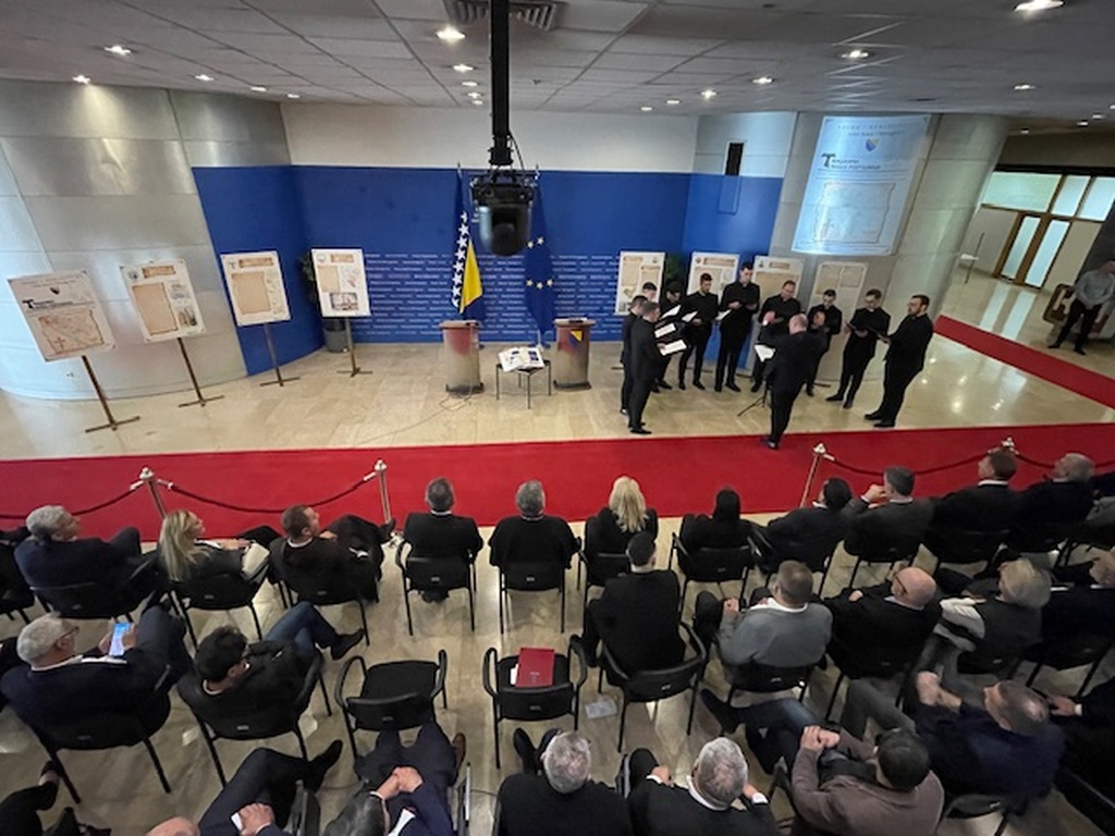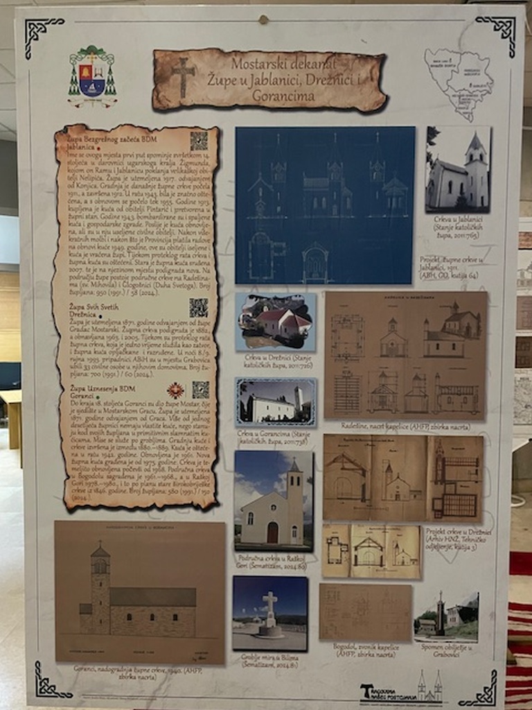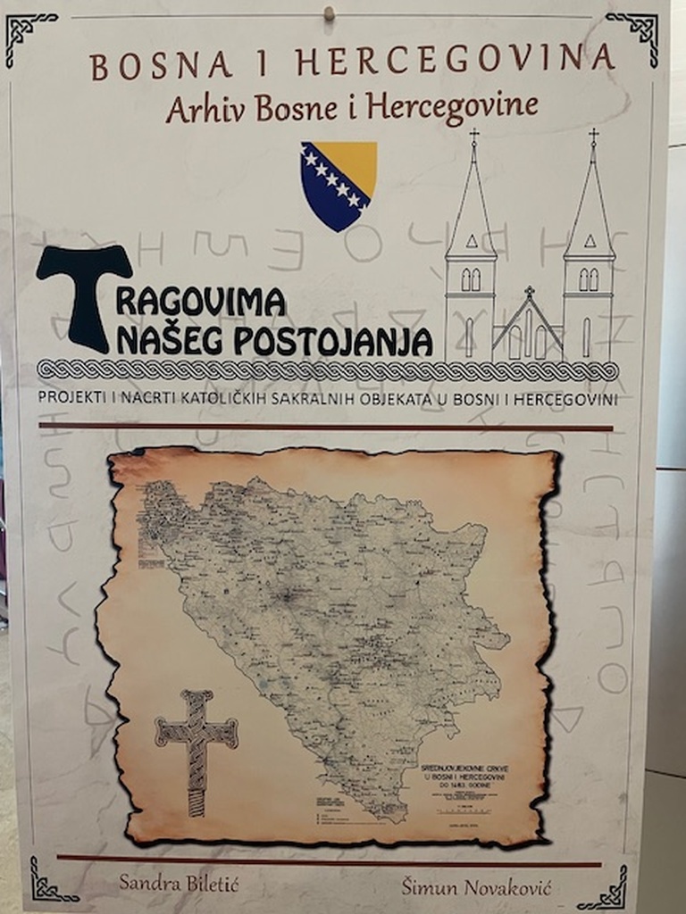 Izložba pod nazivom “Tragovima našega postojanja – projekti i nacrti katoličkih sakralnih objekata u Bosni i Hercegovini” autora dr. sc. Šimuna Novakovića, zamjenika ravnatelja Arhiva Bosne i Hercegovine i više arhivistice Arhiva BiH Sandre Biletić premijerno je predstavljena 21. travnja 2026. u zgradi Parlamentarne skupštine BiH u Sarajevu.
