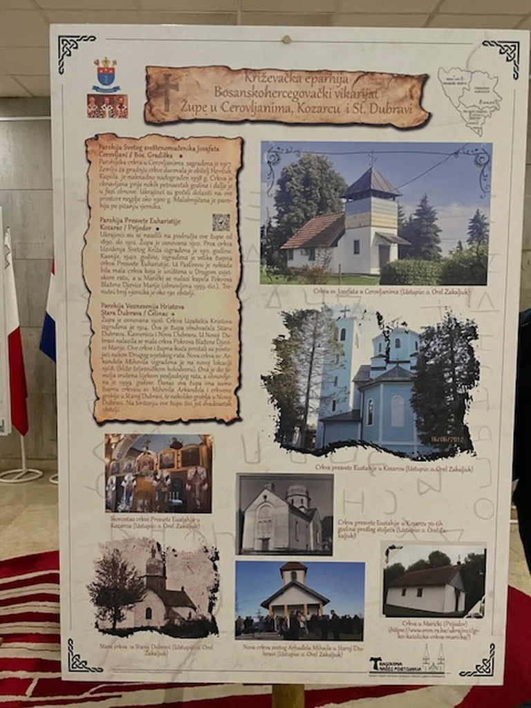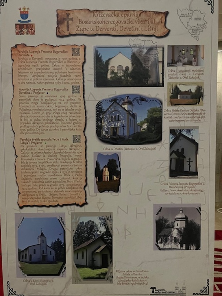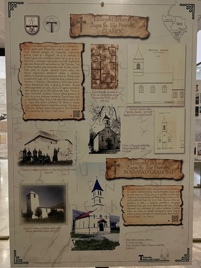 Na više od 150 panoa na izložbi su prikazane katoličke sakralne građevine u Bosni i Hercegovini počevši od ostataka ranovjekovnih bazilika, preko srednjovjekovnih pa do suvremenih sakralnih građevina. Izložba prikazuje bogatu kulturnu i duhovnu sakralnu baštinu katolika ovoga područja te dodatno podsjeća na višestoljetnu prisutnost Katoličke crkve na ovim prostorima.
