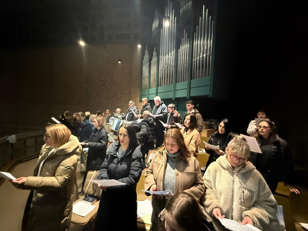 Liturgijsko pjevanje predvodio je veliki misijski zbor, sastavljen od četrdesetak pjevača iz zajednica Karlsruhe, Bruchsal, Pforzheim i Gaggenau. Zborom je ravnao pastoralni suradnik Darko Rubčić, koji je ujedno svirao orgulje, dok je na violončelu svirala mlada umjetnica Hana Rabadan.