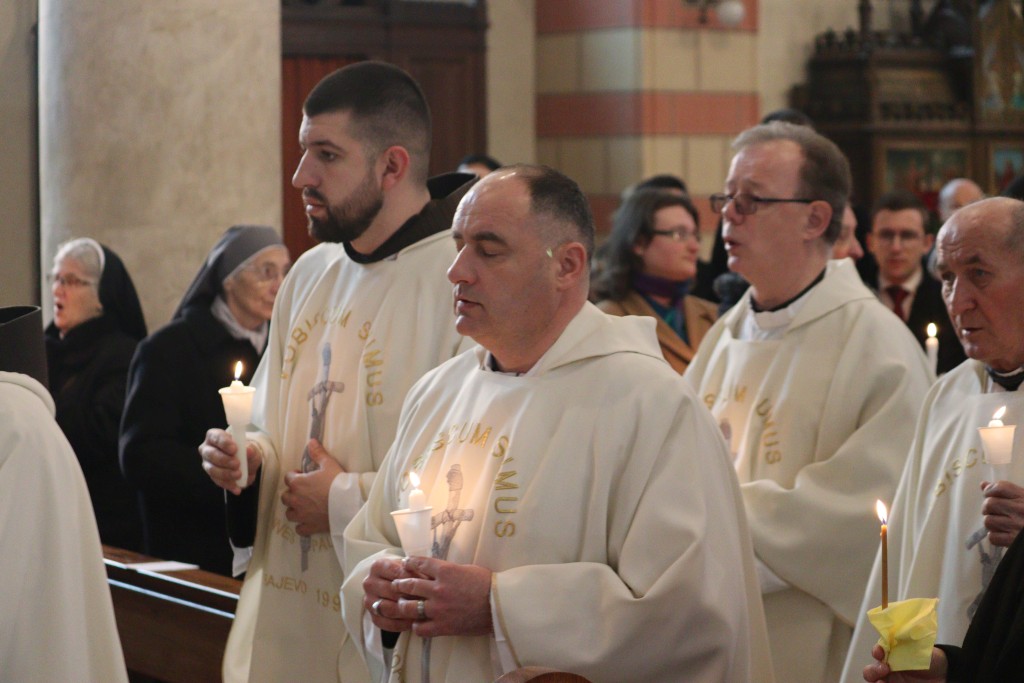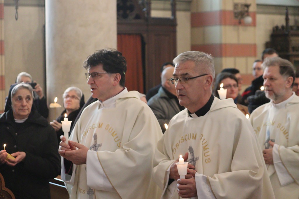 Euharistijsko slavlje na blagdan Prikazanja Gospodinova, Svijećnicu, i Dan posvećenog života u ponedjeljak 2. veljače u sarajevskoj katedrali Srca Isusova predslavio je vrhbosanski nadbiskup i metropolit mons. Tomo Vukšić u suslavlju provincijala Bosne Srebrene fra Zdravka Dadića, imenovanog biskupa Vojnog ordinarijata fra Mire Relote, tajnika nunicijature mons. Javiera Camañes-Forésa, brojnih redovnika, svećenika i uz sudjelovanje redovnica raznih družbi s područja Vrhbosanske nadbiskupije. Svećenici su u procesiji ušli u katedralu, a prije početka misnog slavlja blagoslovljene su svijeće.