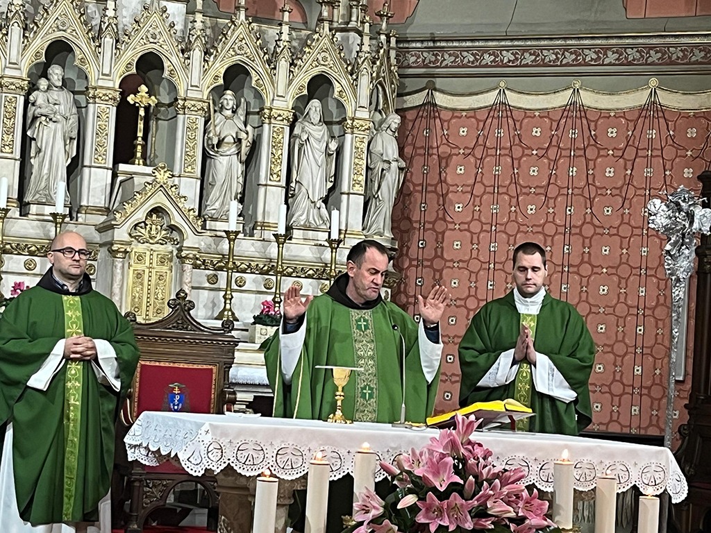 Uslijedila je euharistija koju je predslavio tajnik Franjevačke provincije Bosne Srebrene fra Damir Pavić u koncelebraciji nekoliko svećenika.