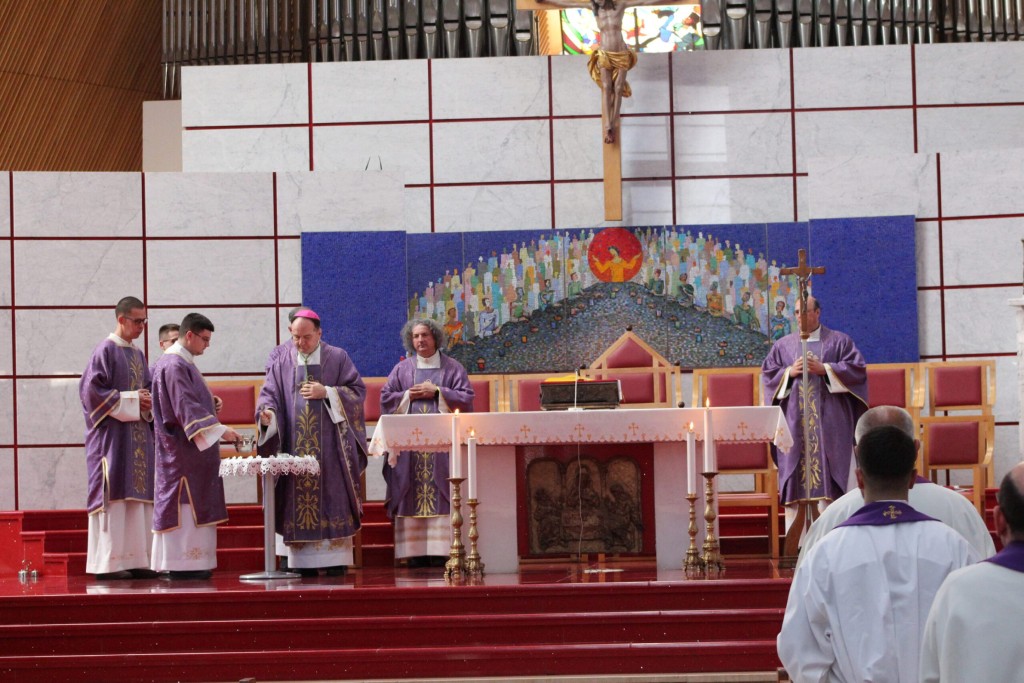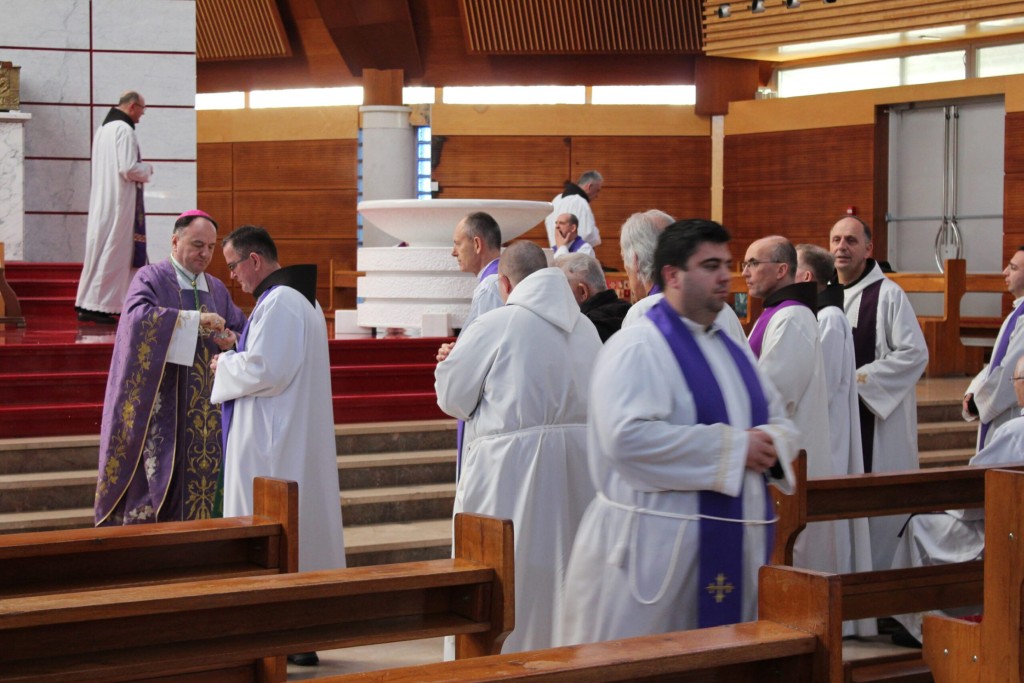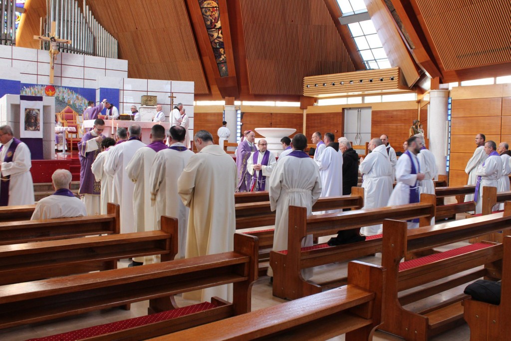 Program je nastavljen pokorničkim bogoslužjem u mostarskoj katedrali, uz prigodu za svetu ispovijed i pobožnost križnoga puta. Središnji dio susreta bilo je euharistijsko slavlje s obredom pepeljanja kojim su svećenici zajednički započeli sveto korizmeno vrijeme.