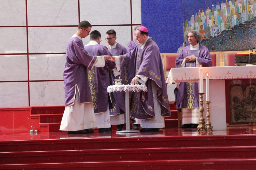 U drugom dijelu homilije biskup Petar je govorio o znaku pepela. “Prah si” ne znači samo podsjetnik na prolaznost, nego na stvorenost. Svećenik nije izvor samome sebi, niti je Crkva njegovo vlasništvo. Biskup je upozorio svećenike na suptilnu napast nezamjenjivosti koja se može pojaviti u službi.