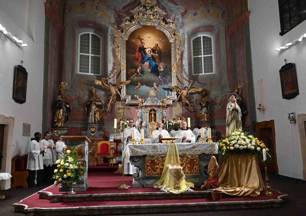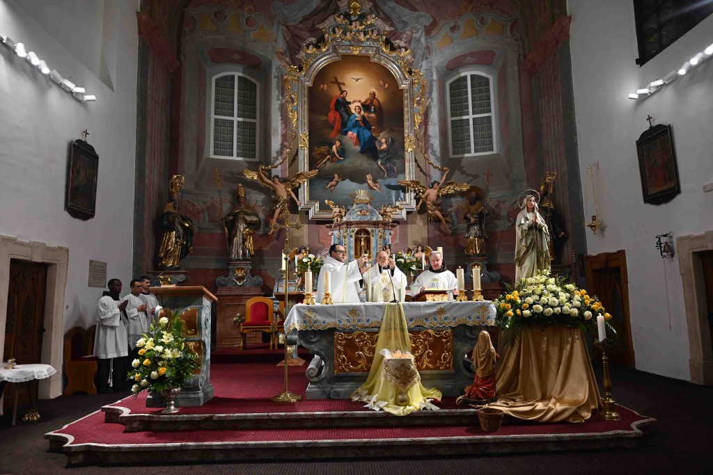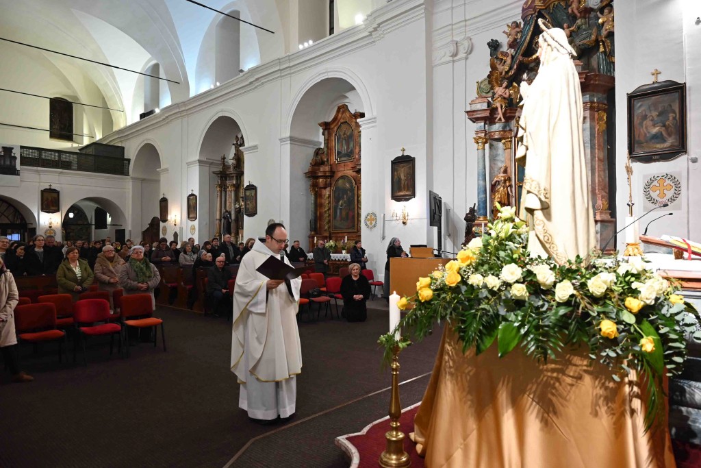 Svečano večernje misno slavlje u franjevačkoj crkvi Presvetog Trojstva u Slavonskom Brodu, kojim je ujedno započela i devetnica Gospi Lurdskoj koja se u toj crkvi slavi od 1892., kada su franjevci iz Lurda donijeli Gospin kip i blagoslovili ga, predvodio je gvardijan i župnik župe sv. Marka Evanđelista na Plehanu u Bosanskoj Posavini fra Ivan Nujić u zajedništvu s domaćim gvardijanom fra Slavkom Milićem i ravnateljem franjevačke klasične gimnazije fra Marijana Lanosovića fra Ivanom Crnkovićem. Posluživali su bogoslovi iz Afrike: fra Paschal Alphonce Kubanga, fra Fabris Biziman i fra Brian Musinguz koji se na Plehanu pripremaju za studij teologije učeći hrvatski jezik.