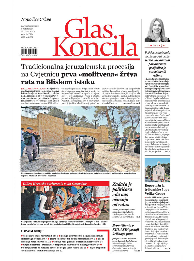 Novi broj Glasa Koncila, pripremljen za nedjelju 29. ožujka, izašao je iz tiska, izvijestila je IKA.