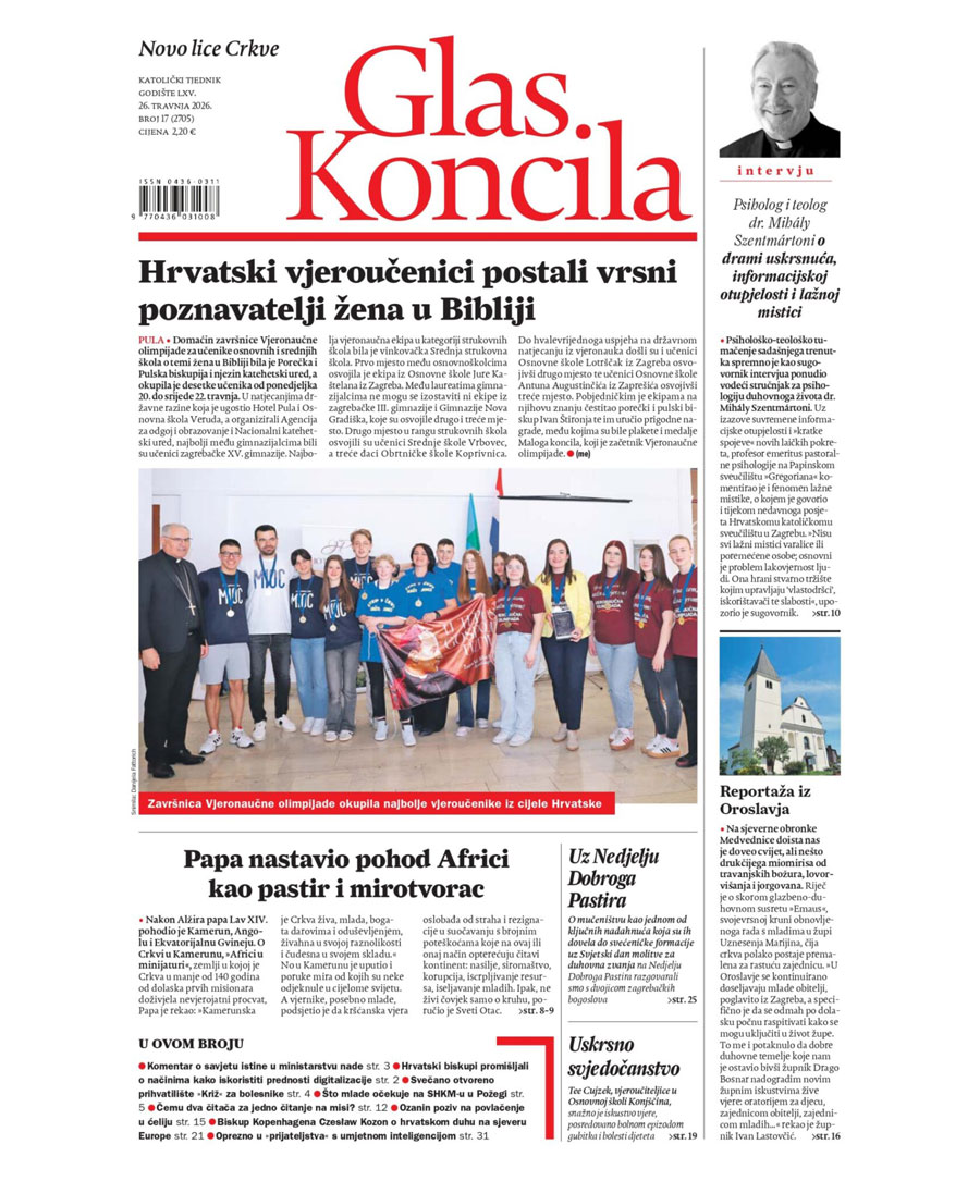 Novi broj Glasa Koncila pripremljen za nedjelju, 26. travnja otvara se završnicom Vjeronaučne olimpijade na kojoj su hrvatski vjeroučenici postali vrsni poznavatelji žena u Bibliji, piše IKA.