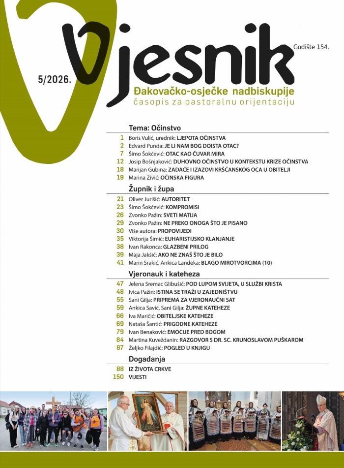 „Vjesnik Đakovačko-osječke nadbiskupije“ u svibanjskom broju obrađuje temu „Očinstvo“, a u svom uvodniku pod naslovom „Ljepota očinstva“ glavni i odgovorni urednik, izv. prof. dr. sc. Boris Vulić ističe: „Možda je upravo to jedna od važnih zadaća našega vremena: vratiti očinstvu njegovo ljudsko i duhovno dostojanstvo.“