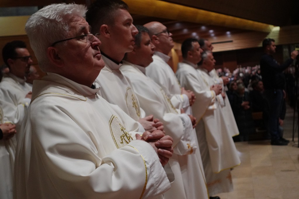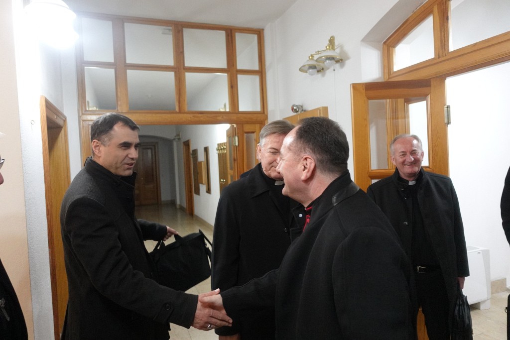 „Gospodine nadbiskupe, nalazite se u gradu Mostaru, koji uz mnoge znamenitosti, u jednom od svojih naselja čuva i ranokršćansku baziliku iz 5., odnosno 6. stoljeća, koja je svjedočanstvo kulturnih i kršćanskih korijena ovoga područja i okolice. Ime grada Mostara upućuje na mostove. Mostovi povezuju dvije obale rijeke Neretve, koja kroz Bosnu i Hercegovini protječe u dužini od 205 km. U svim ovim činjenicama mi, katolici, pripadnici Hrvatskoga naroda u ovoj biskupiji, ali i u Bosni i Hercegovini, čitamo i svoju zadaću povezivanja i izgrađivanja društva u kojemu živimo, kako bi ono počivalo na načelima jednakopravnosti naroda, solidarnosti i međusobnog razumijevanja, u poštivanju dostojanstva svih koji žive na ovim prostorima. Rijeka Neretva koja spaja ovaj grad, posljednjih 20 km teče kroz Hrvatsku i ulijeva se u Jadransko more“, rekao je biskup Palić te pozdravio „braću biskupe iz Bosne i Hercegovine na čelu s mons. Tomom Vukšićem, nadbiskupom i metropolitom vrhbosanskim“ i biskupe Splitsko-makarske metropolije na čelu s mons. Marinom Barišićem, nadbiskupom splitsko-makarskog i metropolitom.