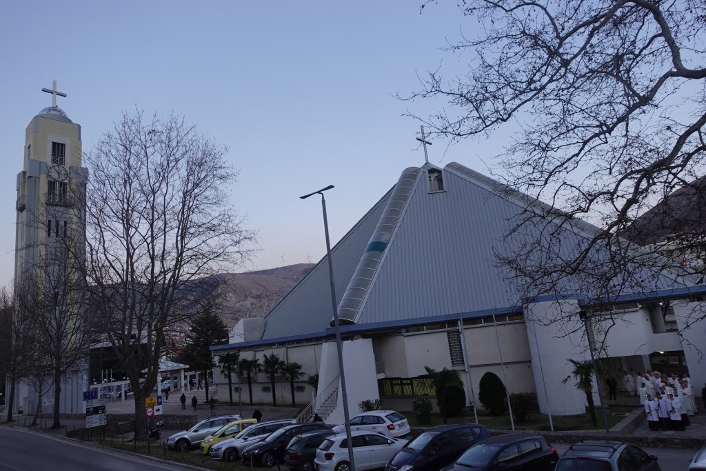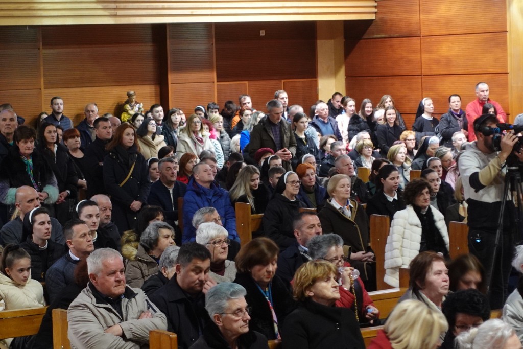 Pozdrav nadbiskupu Gallagheru u ime svih uputio biskup mostarsko-duvanjski i apostolski upravitelj trebinjsko-mrkanski mons. Petar Palić. „Preuzvišeni gospodine nadbiskupe! Velika mi je čast i radost pozdraviti Vas, danas na svetkovinu sv. Josipa, zaštitnika Crkve, hrvatskoga naroda i ove naše Mostarsko-duvanjske biskupije. Pozdravljam Vas u ime vjernika Mostarsko-duvanjske i Trebinjsko-mrkanske biskupije, koja je povjerena pastoralnoj skrbi mostarsko-duvanjskog biskupa. Primamo Vas s osobitim poštovanjem i ljubavlju i u Vašem pohodu ovih dana osjećamo posebnu i iskrenu naklonost svetoga Oca Franje prema Bosni i Hercegovini, prema katolicima i svima onima s kojima živimo u ovoj zemlji. Radosni smo što ćemo upravo na današnji dan, na koji je prije 9 godina papa Franjo započeo svoju papinsku službu, slaviti zajedno s Vama ovu euharistiju, u katedrali Marije Majke Crkve, kojoj povjeravamo služenje Svetoga Oca i cijelu Crkvu“, kazao je biskup Palić te dodao: