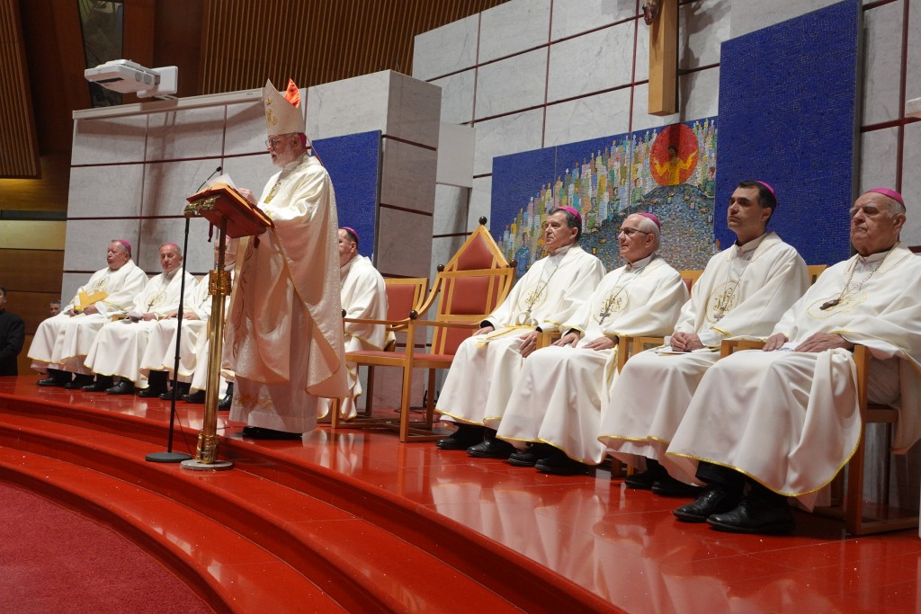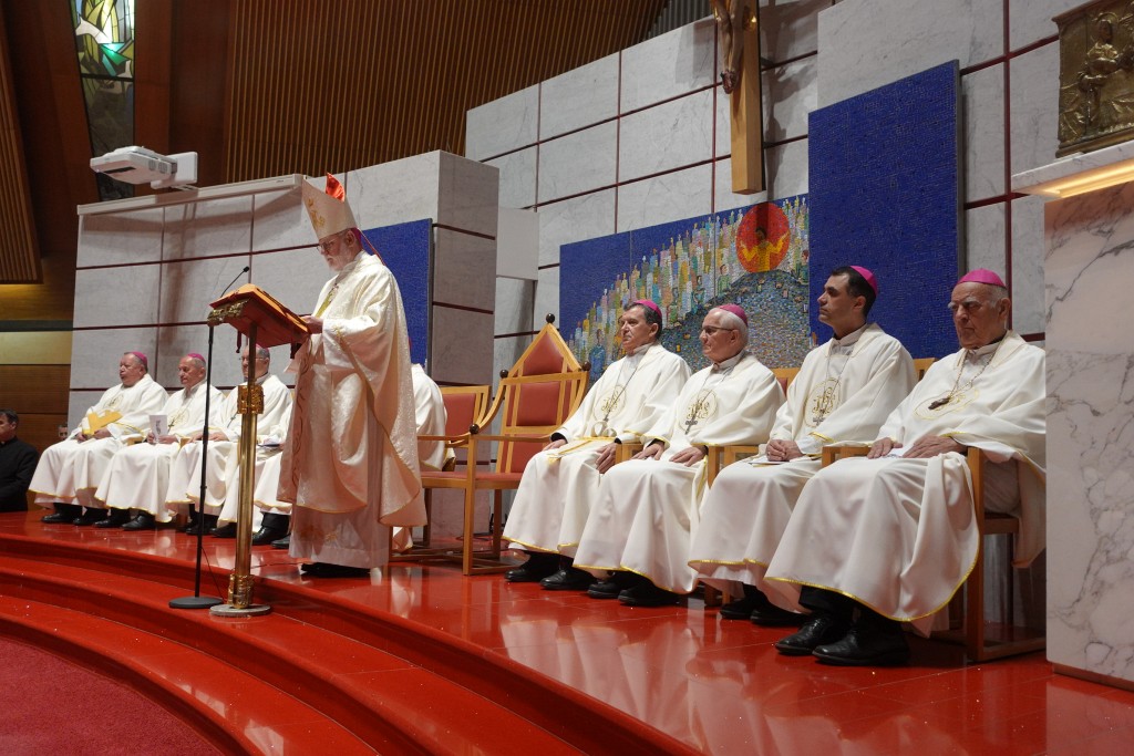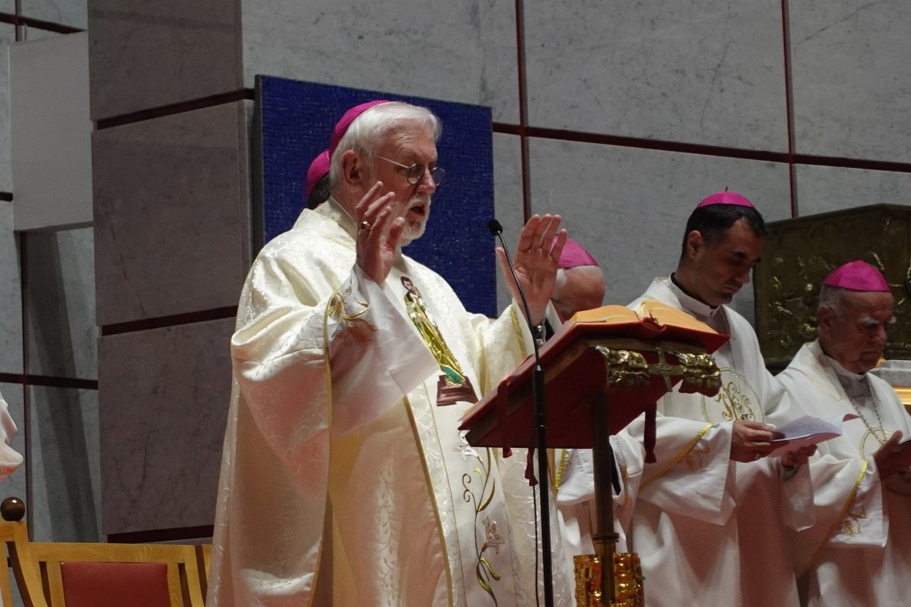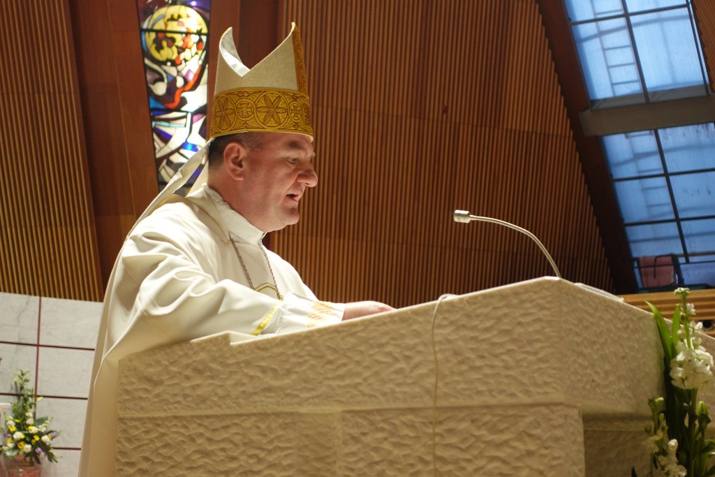 U prigodnoj homiliji, koju je na hrvatskom jeziku čitao don Ivan Turudić, nadbiskup Gallagher je kazao da je vrlo sretan što zajedno s okupljenima u katedrali može „slaviti ovu svetu misu o svetkovini sv. Josipa, zaštitnika sveopće Crkve kao i ove Biskupije u ovoj katedrali, posvećenoj Majci Crkve i sagrađenoj velikom žrtvom“.