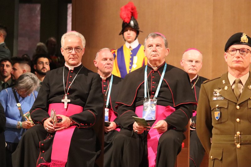 Nadbiskup Vukšić: Da, svake godine s nama, osim mene i vojnika, putuje i ponetko od svećenika. Ove godine su recimo putovala trojica svećenika koji djeluju u Vojnom ordinarijatu i brinu se o dušobrižništvu za vojnike. Iz Hrvatske, jer je njih mnogo više u Vojnom ordinarijatu, putovalo je više svećenika. Logika toga hodočašća je da u svakom autobusu hodočasnika koji putuju bude barem jedan svećenik kao jedna vrsta duhovnoga vođe na tome hodočašću, da informira, animira, okuplja, da se brine za njih i u odlasku i u povratku.
