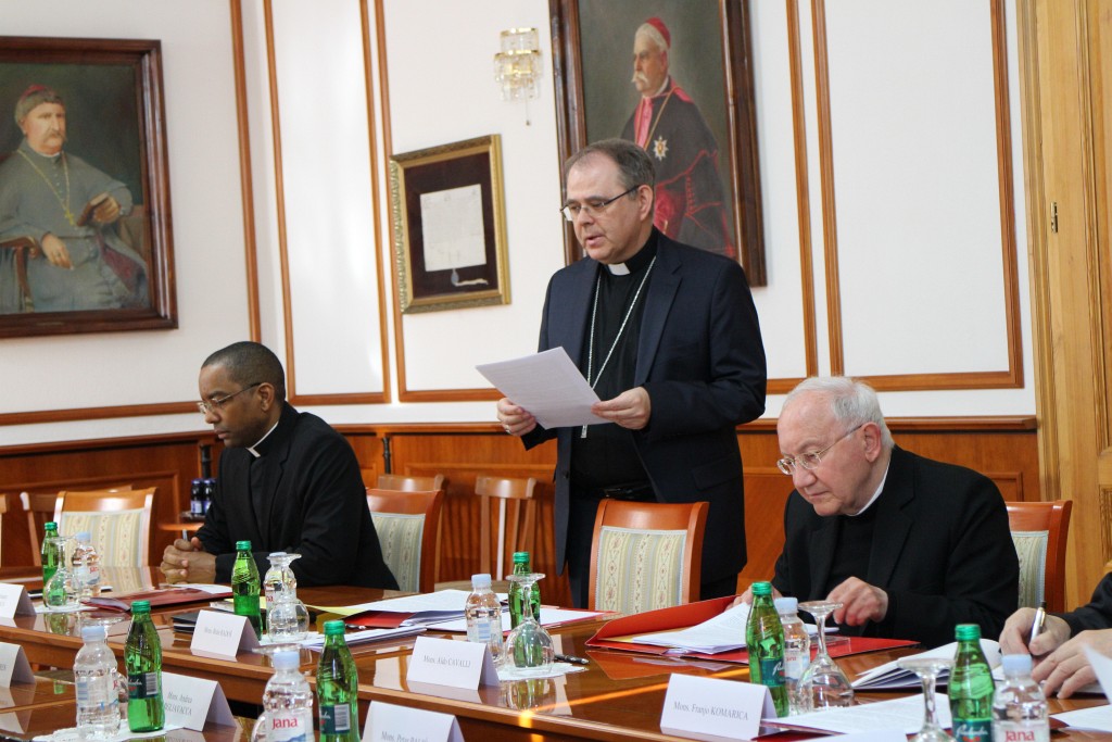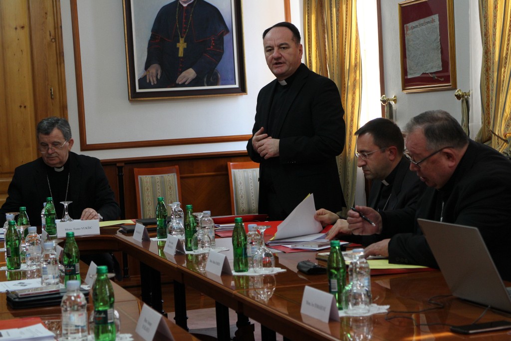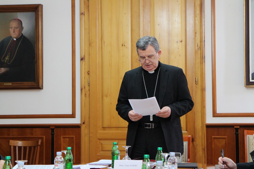 Pošto se ukratko osvrnuo na dnevni red zasjedanja, nadbiskup Vukšić je kazao: „U sjeni nesretnih događaja u Ukrajini, u ime Boga molimo da taj rat čim prije završi, da prestane ubijanje i progon ljudi i razaranje i uništavanja njihove imovine i drugih sredstava za život. A sve one, koji možda planiraju slične tragedije na drugim stranama, neka moćna Božja ruka i pravedni zakoni ovoga svijeta zaustave prije negoli na bilo koji način oni ostvare svoje zle nakane. Molimo također da trajan mir bude i u našoj domovini. I neka se sva neriješena pitanja rješavaju samo dijalogom i neka se nađe načina kako će se u njoj poštivati sva pojedinačna prava i dostojanstvo svakoga čovjeka kao i kolektivna prava i dostojanstvo svakoga naroda. Jer gaženjem bilo čijih prava sužnjevi su i oni koji su gaženi i oni koji ih gaze: jedni su porobljeni jer su im prava zakinuta a drugi su robovi vlastitih poriva da vladaju drugima i nameću im svoju volju. U tom smislu potrebno je posebice u ovom trenutku podsjetiti cijelu javnost da slobodu treba živjeti odgovorno. To je ono stanje kad je svatko poštovan i nitko nije ugrožen: ni gaženjem sa strane drugoga i vlastitim porivom da ugnjetava drugoga. Takvo stanje želimo sebi i svima oko sebe, koji su naša braća i bližnji, i u tom pravcu podržavamo sve napore“, kazao je nadbiskup Tomo.