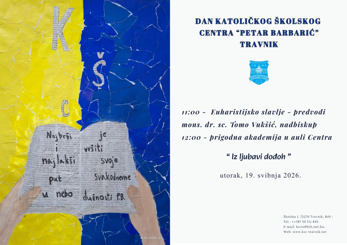 Katolički školski centar “Petar Barbarić” u Travniku proslavit će u utorak 19 svibnja 2026. svoj Dan.
