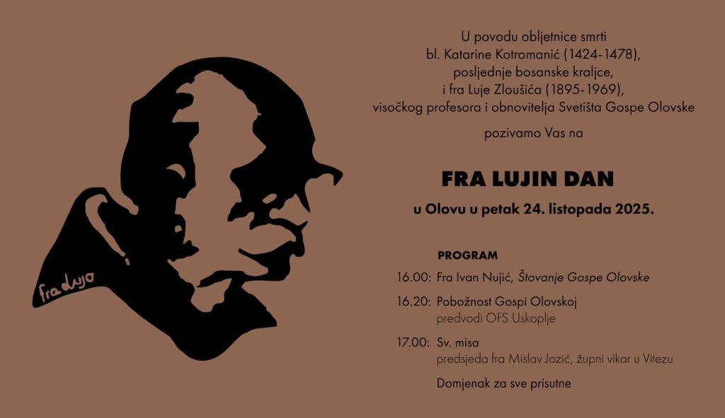 U povodu obljetnice smrti Katarine Kotromanić (1424. – 1478.), posljednje bosanske kraljice i obljetnice smrti fra Luje Zloušića (Vareš, 1895. – Visoko, 1969.), dugogodišnjeg profesora, odgojitelja i ravnatelja Franjevačke klasične gimnazije u Visokom te obnovitelja svetišta Gospe Olovske, u Olovu će se u petak 24. listopada održati „Fra Lujin dan“.