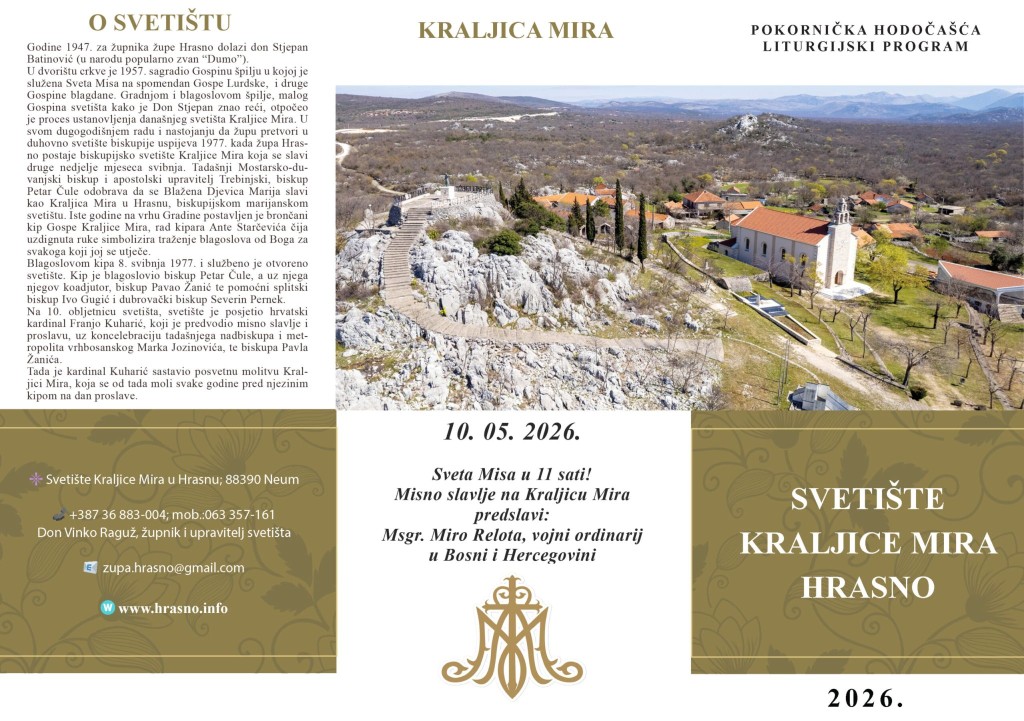 I ove godine u sve nedjelje korizme nastavlja se tradicionalni korizmeni pohod, biskupijsko Pokorničko hodočašće u svetište Kraljice Mira u Hrasnu. Župe Trebinjsko-mrkanske biskupije, kao i ostale župe koje žele, mogu sudjelovati u ovome korizmenom hodočašću u Hrasno, piše Crkva na kamenu.