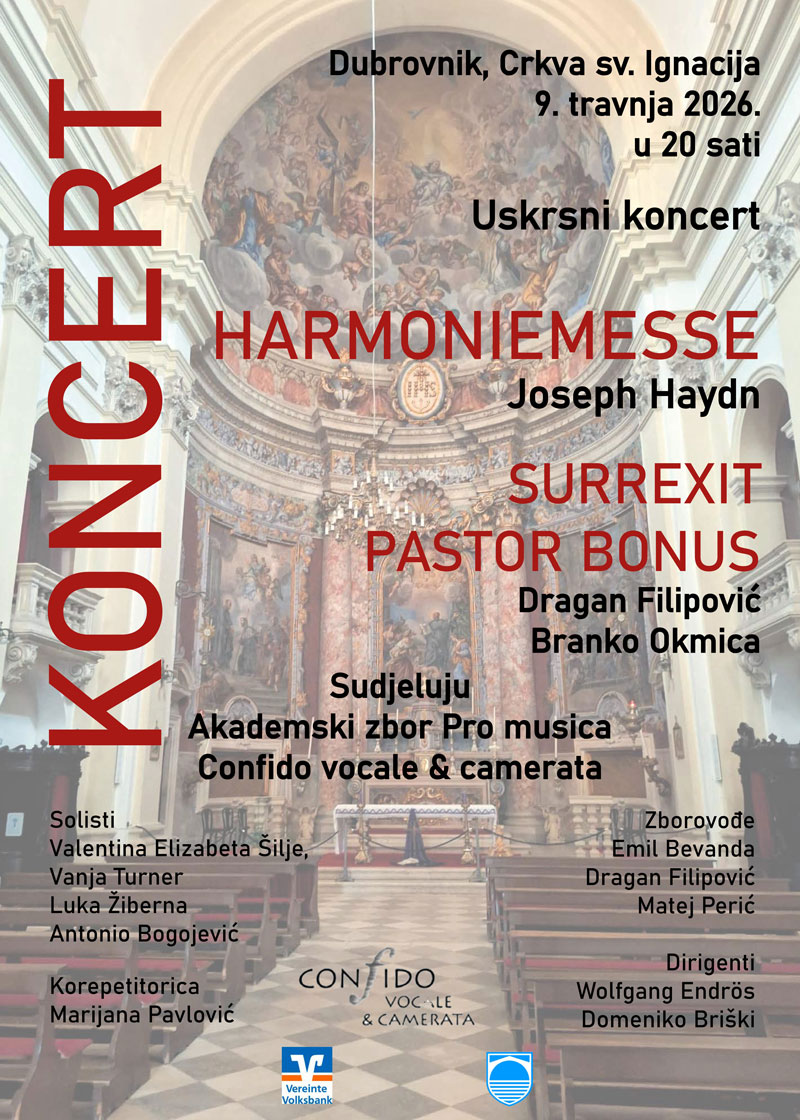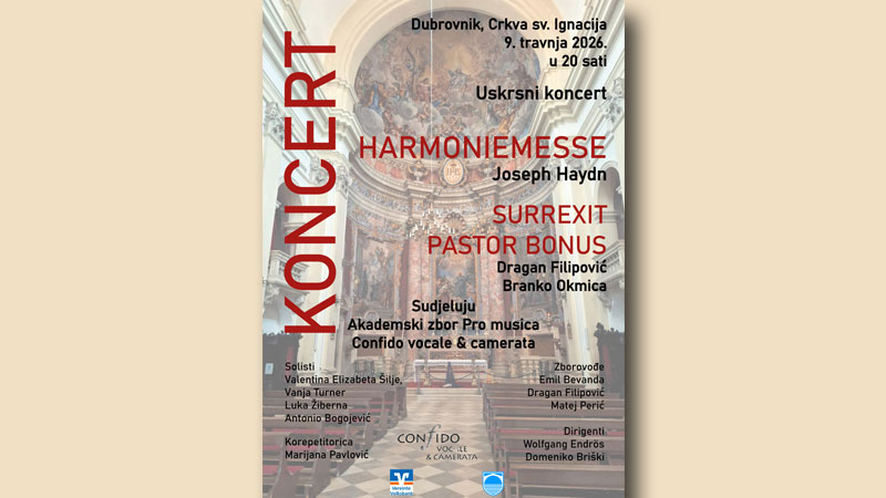 Svečani uskrsni koncerti na kojima će biti izvedena znamenita Haydnova Harmoniemesse održat će se 9. i 10. travnja u Dubrovniku i Mostaru, donoseći publici bogat glazbeni program.