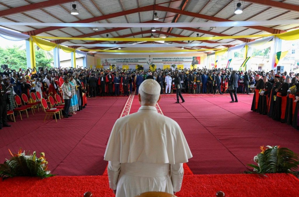Bio je to poziv da je potrebno razbiti iluziju o sukobu između znanosti i vjere, ali i upozoriti na rizik znanja koje se pasivno predaje dominantnim logikama. Svjetionik u službi cijelog kontinenta i Crkve – tako je Sveti Otac opisao sveučilište osnovano 1989. godine pod okriljem Svete Stolice od strane Udruženja biskupskih konferencija središnje Afrike na kojemu se trenutno obrazuje 8 tisuća mladih Afrikanaca.