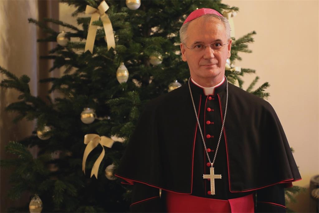I ovoga Božića, koji slavimo u vremenu obilježenu ranama podjela, rata i nesigurnosti, posebno snažno odzvanjaju riječi »silne nebeske vojske« koja u noći Gospodinova rođenja daje slavu »na visinama Bogu«, a na zemlji zaziva »mir ljudima, miljenicima njegovim« (Lk 2, 14). Slaveći otajstvo Utjelovljenja, Crkva moli da Krist, »Knez mira« (Iz 9, 6), uđe u srce svakoga čovjeka, u naše obitelji i društvo, u Europu i cijeli svijet.