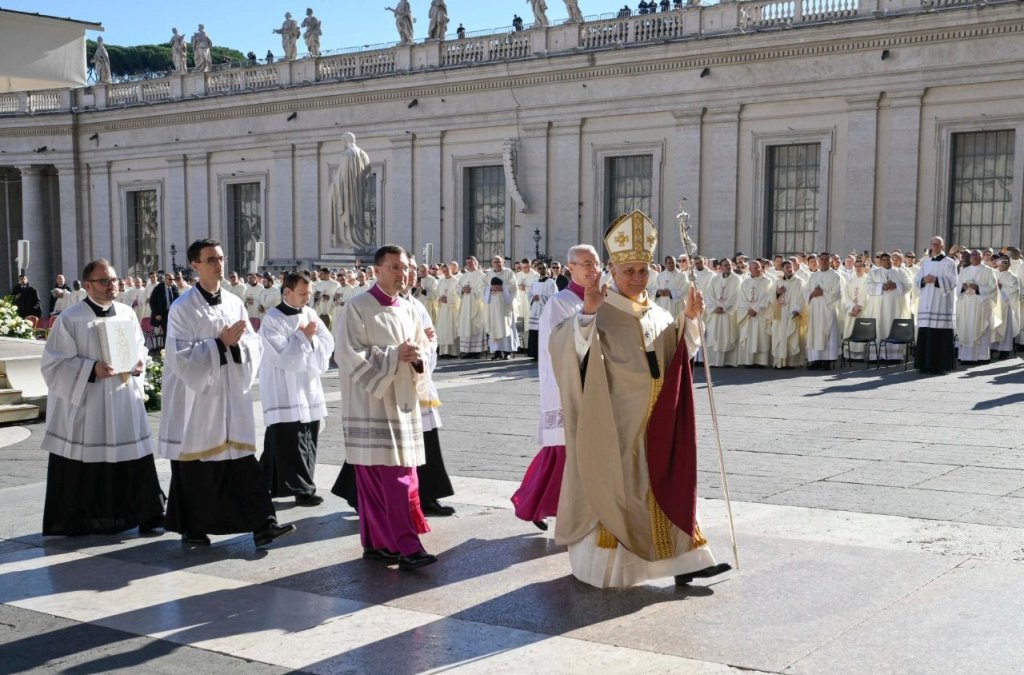 Prije nego zajedno uputimo molitvu Anđeo Gospodnji, želim pozdraviti sve vas koji ste sudjelovali u ovom jubilejskom slavlju, osobito zborove i korove koji su došli iz svih krajeva svijeta. Hvala vam na vašoj prisutnosti! Neka Gospodin blagoslovi vašu službu!