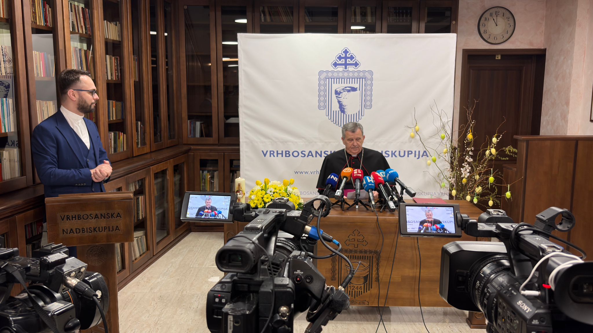Vrhbosanski nadbiskup metropolit mons. Tomo Vukšić na susretu s novinarima, koji je održan u subotu 4. travnja u Nadbiskupskoj rezidenciji u Sarajevu, pročitao je tekst poruke i uputio uskrsnu čestitku vjernicima.
