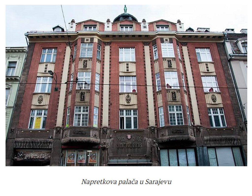 U Sarajevu je 1913. izgrađena prelijepa secesijska Napretkova palača te đački dom Kralj Tomislav, kao i dom kulture u Novom Sarajevu, zatim dom Kralj Petar Svačić u Mostaru i Napretkov neboder u Zagrebu. Napredak je izgradio brojne višenamjenske domove u Tuzli, Zenici, Bugojnu, Travniku, Vitezu, Širokom Brijegu, Brčkom, Osijeku, itd. Godišnje je gradio i po tisuću četvornih metara prostora.