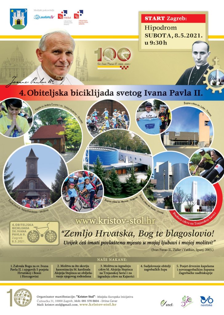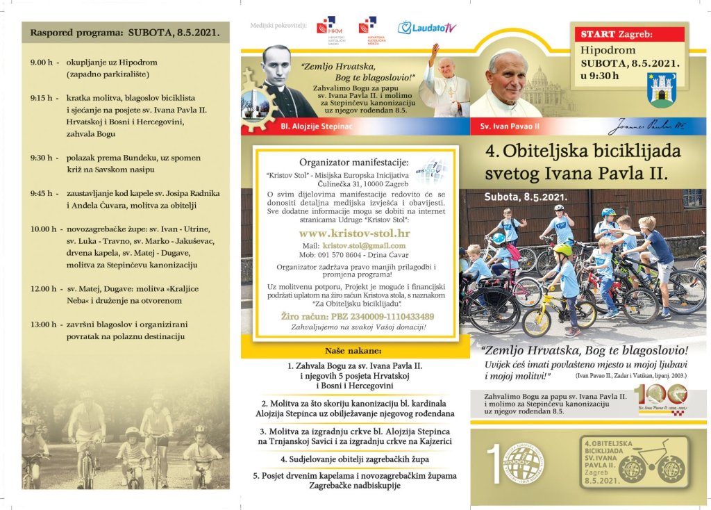 Uz Stepinčev rođendan, u zahvalnom sjećanju na pohode sv. Ivana Pavla II. Hrvatskoj i BiH, Kristov Stol - Misijska Europska Inicijativa organizira 4. Obiteljsku biciklijadu sv. Ivana Pavla II. u subotu, 8. svibnja 2021, pokroviteljstvom grada Zagreba, uz medijsko pokroviteljstvo Hrvatske katoličke mreže.