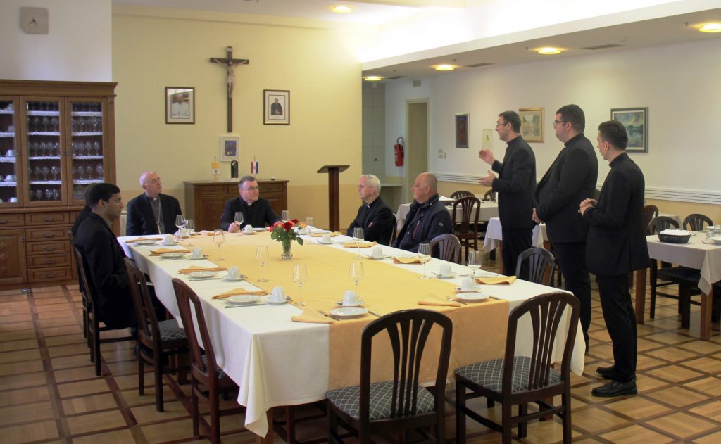 Nakon molitve na grobu bl. Alojzija Stepinca, kardinal Bozanić i nuncij Lingua uputili su se prema Nadbiskupskom bogoslovnom sjemeništu u kojem su se susreli sa sjemenišnim poglavarima i duhovnicima na čelu s rektorom preč. Željkom Faltakom. Na susretu su se upoznali s radom i življenjem bogoslovske zajednice. (kta/ika)