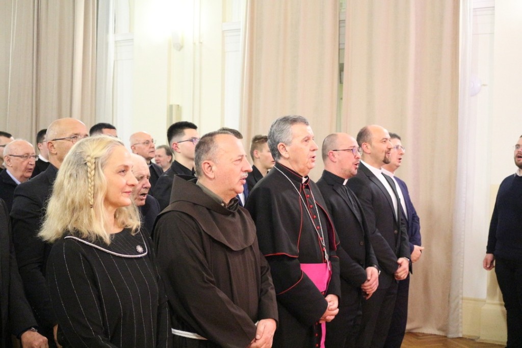 Na kraju programa rektor Rako pozvao je nadbiskupa metropolita vrhbosanskog mons. Tomu Vukšića da uputi božićnu čestitku. Nadbiskup je u svome obraćanju podijelio radost s okupljenima, kazavši da je lijepo vidjeti ispunjenu dvoranu. Nakon čestitke, druženje se nastavilo u bogoslovskom baru. (kta)