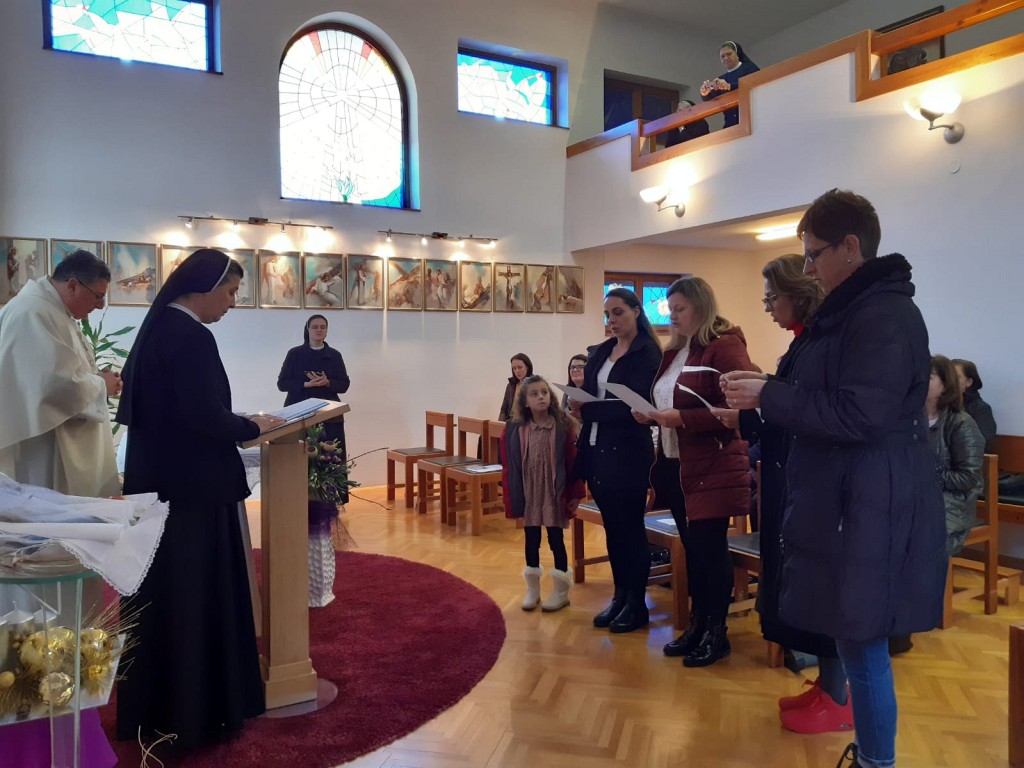Euharistijsko slavlje je predslavio vlč. Ošap, a nakon popričesne molitve s. M. Ana Marija Kesten, provincijska glavarica i predsjednica Društva Prijatelja Maloga Isusa predvodila je Obred primanja novih članova u Društvo, a to su: Ljiljana Grubešić i Zorica Miletić iz Fojnice, te Ivana Šapina i Vedrana Glavočević iz Gromiljaka. Bio je to posebno emotivan i radostan čin za nove članice, ali i za okupljenu zajednicu Prijatelja Maloga Isusa. Sve je okrunjeno pjesmom „Kao Marija“ s molitvom na nakanu vjernosti Gospodinu u vremenima koja žive i koja su pred njima, po uzoru na riječi vlč. Ošap prema kojima „imamo samo ovaj trenutak u svojoj vlasti da ljubimo Boga i brata čovjeka, a po tome ćemo i biti suđeni“. „Prošlost i budućnost nisu u našim rukama, ali „sada“ jeste. Sada ljubi Boga i bližnjega kao što je to u svom životu radila naša Majka Marija“, zaključio je vlč. Ošap.