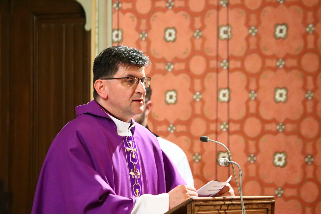 Okupljeni vjernici su prije svete mise sudjelovali na pobožnosti križnoga puta koju je predvodio vicerektor Vrhbosanskog bogoslovnog sjemeništa vlč. Ljubo Zadrić.