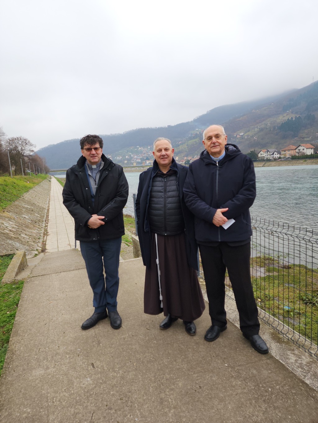 Na poseban način pozdravio je sestre Kćeri Božje ljubavi predvođene predstojnicom sarajevske zajednice na Banjskom brijegu s. Fidelis Lučić i Školske sestre franjevke Provincije Svete Obitelji koje su došle iz glavnog grada BiH. Zahvalio je svećenicima na podršci napominjući da su trojica od njih – preč. Zubak, mons. Tomašević i mons. Čuturić kao župnici brinuli za malobrojnu goraždansku zajednicu. Pojasnio je da spomendan Drinskih mučenica slave dva dana ranije jer će na sam dan biti Misno slavlje u mjestu njihovog štovanja u crkvi Kraljice svete krunice u Sarajevu koje će predvoditi franjevački provincijal iz Mostara fra Jozo Grbeš. „Ja sam zamolio provincijala naše Bosne Srebrene fra Zdravka Dadića da nam danas predvodi ovo sveto Misno slavlje i to ne slučajno. Prve temelje katoličanstva posijali su fratri upravo u ovim krajevima gdje je u prošlosti bilo 28 crkava i samostana“, kazao je župnik Tadić zahvaljujući provincijalu fra Zdravku što kao redovnički poglavar predvodi euharistiju. Zahvalio je svima koji su pomogli u organizaciji misnog slavlja i druženja u župnoj kući nakon svete mise.