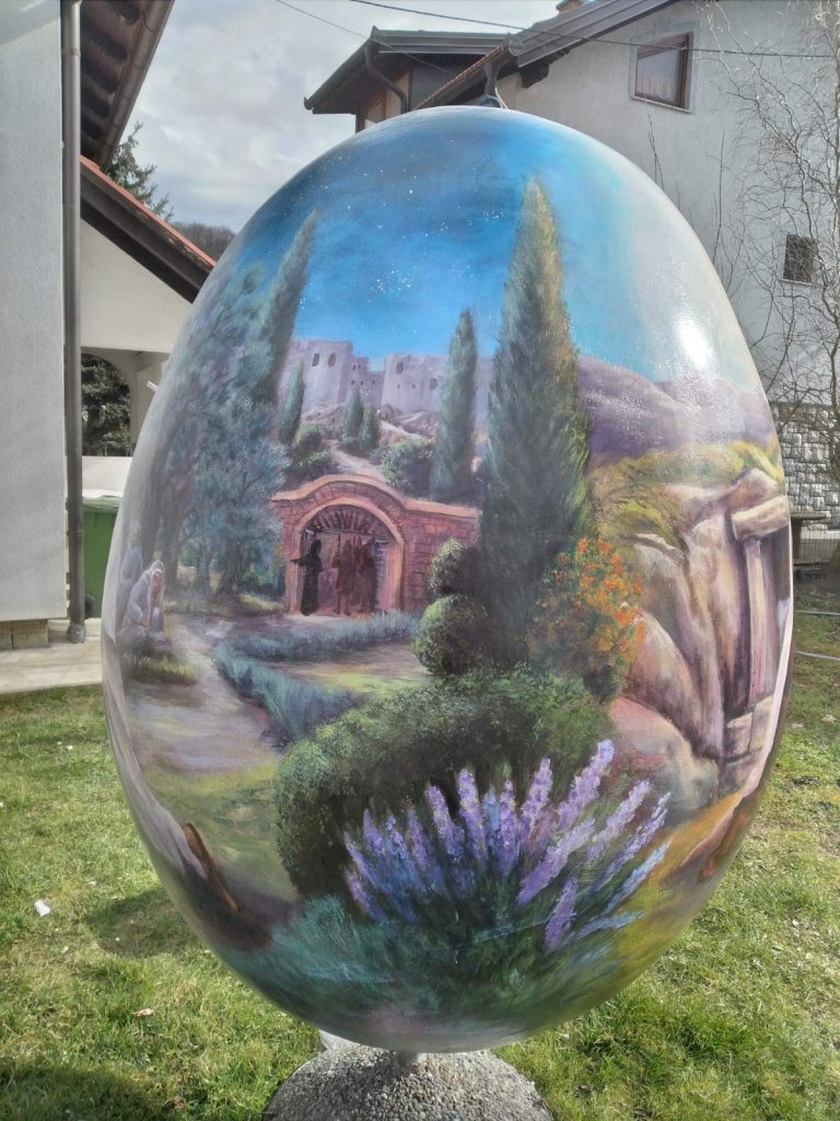 Onda sam osmislio i razradio ideju kako uraditi pisanicu. Oblikovao sam tu pisanicu od stiropora sa sistemom impregnacije, preparature, rundiranja i na kraju oslikavanja. Potom sam ih oslikavao. Te pisanice sam uradio u Žepču i Jajcu (gdje sam samo oslikao već izrađene pisanice). Mislim da je to bilo uspješno. Radim i male pisanice od 20 do 30 cm visine za obiteljske potrebe.“