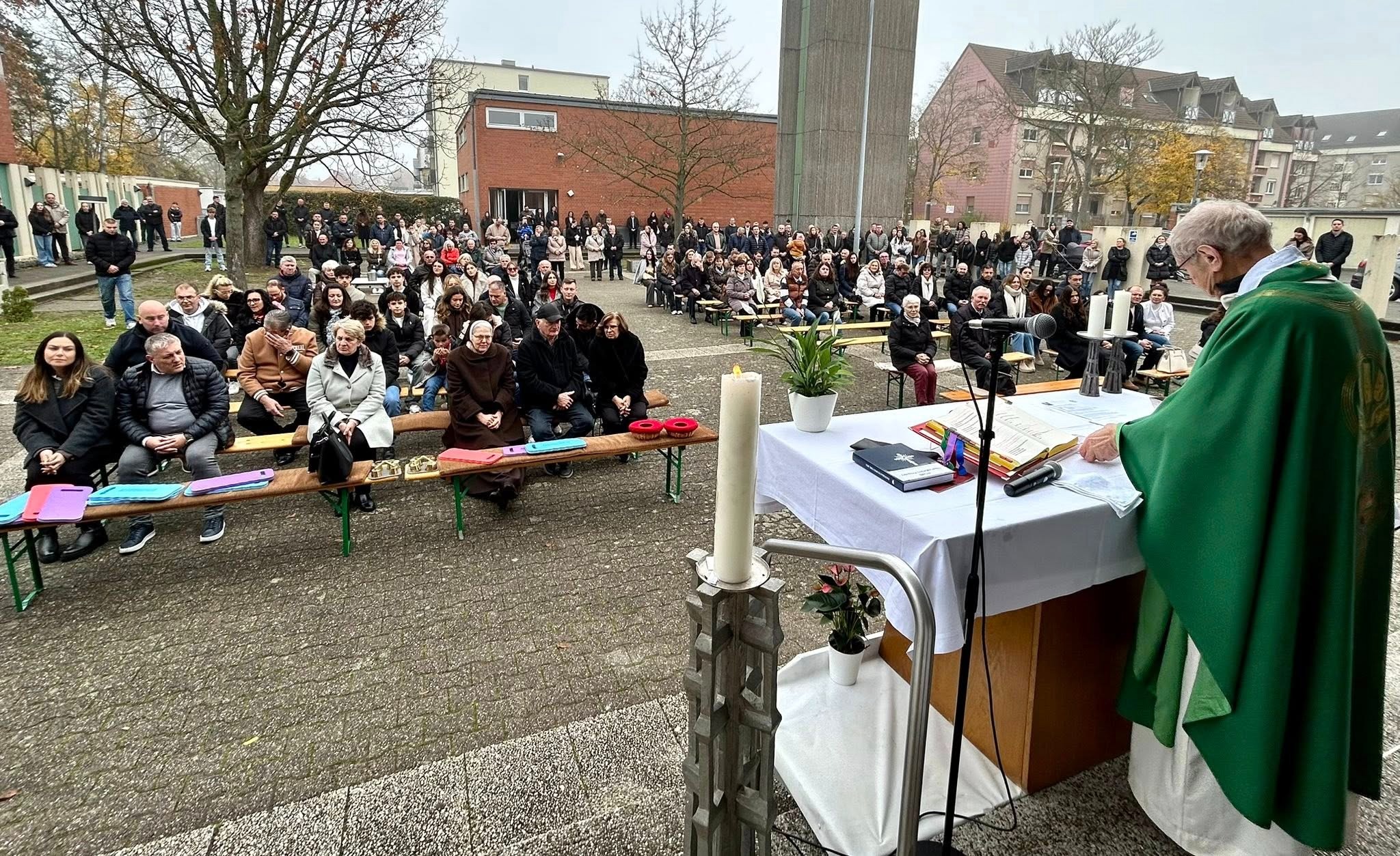 Tako je u nedjelju, 16. studenoga, sveta misa slavljena na otvorenom prostoru ispred zatvorene crkve. Misno slavlje predvodio je don Ivo Nedić a okupljeni vjernici svjedočili su dubokoj povezanosti zajednice koja se ne da obeshrabriti poteškoćama. Usprkos vremenskim neprilikama okupio se velik broj vjernika potvrđujući živu vjeru hrvatske zajednice u Ludwigshafenu.