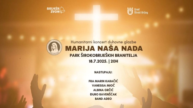 Uz potporu Grada Širokog Brijega i većeg broja sponzora, u Parku širokobrijeških branitelja u Širokom Brijegu 18. srpnja 2025. u 20.00 sati bit će upriličen humanitarni koncert od kojeg će sredstva biti usmjerena prema Domu za djecu s tjelesnim ili psihičkim poteškoćama “Marija - naša nada” u Širokom Brijegu.