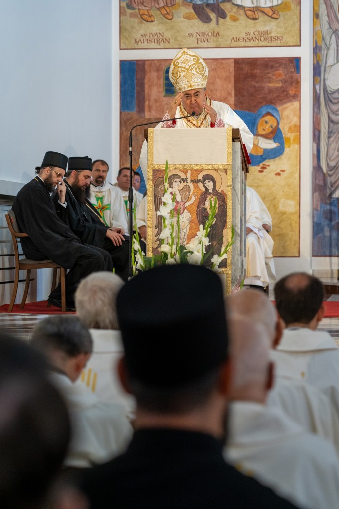 Svečano Euharistijsko slavlje i blagoslov Pastoralnog centra Papa Ivan Dobri, mozaika Preobraženja Gospodinova na pročelju i zvoniku katedrale, novih vitraja, kipa pape Ivana XXIII. upriličeno je u subotu, 10. rujna u katedrali Uznesenja BDM u Beogradu