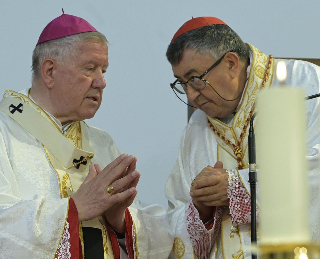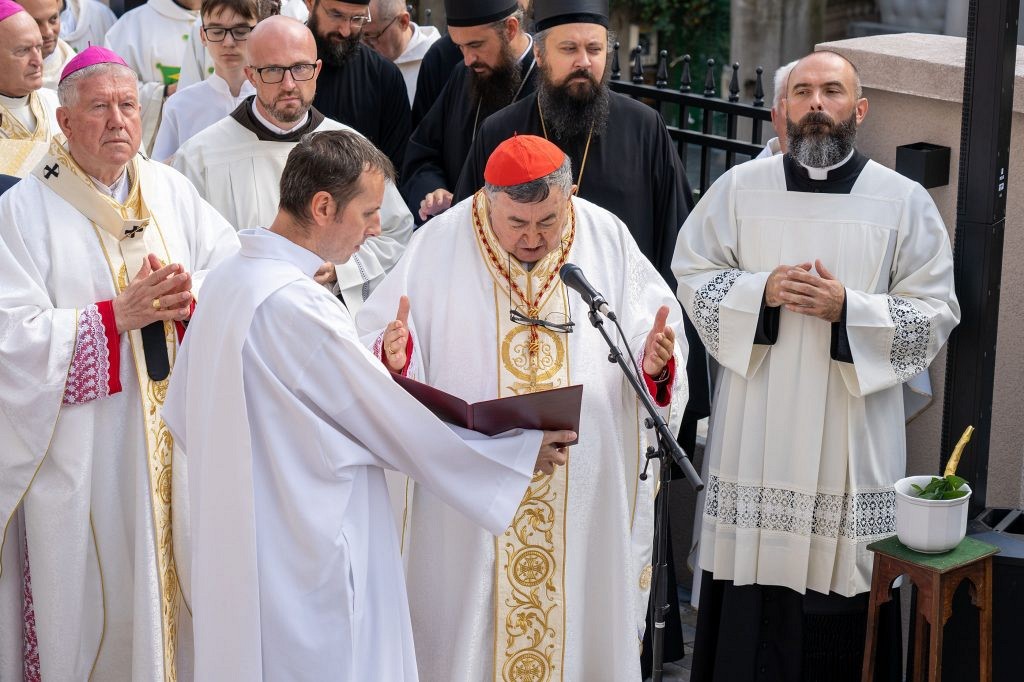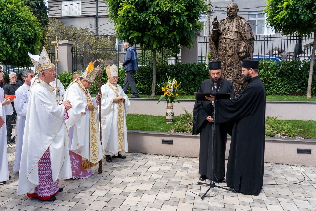 Svečanost je predvodio nadbiskup metropolit vrhbosanski u miru kardinal Vinko Puljić u zajedništvu beogradskog nadbiskupa i metropolita mons. Stanislava Hočevara, zrenjaninskog biskupa i predsjednika Međunarodne biskupske konferencije Svetih Ćirila i Metoda mons. Ladislava Nemeta, dijecezanskog upravitelja Subotičke biskupije mons. Ferenca Fazekasa, otpravnika poslova Apostolske nuncijature u Beogradu mons. Simona Bolivara Sancheza Carriona, te uz suslavlje mnogobrojnih svećenika iz Srbije, Hrvatske i Bosne i Hercegovine. Svečanom slavlju u ime Njegove Svetosti Patrijarha srpskog gosp. Porfirija nazočio je episkop hvostanski g. Justin i episkop marčanski g. Sava, vikarni episkopi Njegove Svetosti, a slavlju je nazočio episkop mohački g. Damaskin, vikarni episkop bačkog vladike g. Irineja, kao i veći broj vjernika Srpske Pravoslavne Crkve. Nazočila je i izaslanica predsjednika Republike Srbije i predsjednice Vlade Republike Srbije Maja Gojković, ministrica kulture i potpredsjednica Vlade, te dr. Vladimir Roganović, direktor Uprave za suradnju s Crkvama i vjerskim zajednicama, sadašnji narodni poslanik Goran Vesić, direktor Pošte Srbije Zoran Đorđević te veleposlanici ili predstavnici država Ukrajine, Sjedinjenih Američkih Država, Republike Hrvatske i Malteškoga reda.