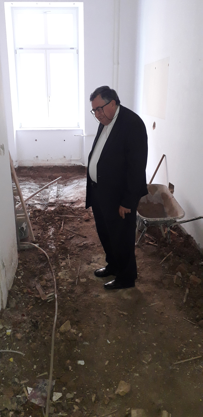 Nakon obilaska radova na obnovi fasade, kardinal je obišao i gradilište u unutrašnjosti Bogoslvije koji su započeli početkom srpnja. Radi se o projektu temeljitog preuređenja I. kata zapadnog krila Bogoslovije u kojem će u budućnosti biti smješteni bogoslovi. Projekt obuhvaća uklanjanje građevinskog šuta, koji je u vrijeme gradnje Bogoslovije krajem 19. stoljeća služio kao izolacijski materijal, izlijevanje čvrstog poda, ugradnju novih instalacija i prilagođavanje cjelokupnog prostora za buduće potrebe bogoslova. Prema predviđenoj dinamici radova, ovaj projekt bi trebao biti dovršen do povratka bogoslova u novu akademsku godinu.