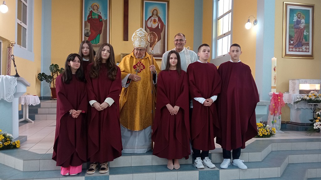 Tijekom Svete mise po rukama kardinala Puljića četiri djevojke i dvojica mladića primili su pečat Dara Duha Svetoga, a krizmatelj ih je tom prigodom potaknuo da budu dobri kršćani.