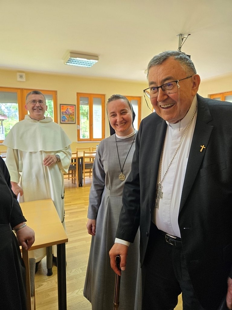 Kardinal Vinko Puljić, nadbiskup vrhbosanski u miru pohodio je 11. lipnja sestre Služavke Maloga Isusa u „Kući Navještenja“ u Gromiljaku, sudionice duhovnih vježbi koje predvodi fr. Petar Galić, dominikanac.