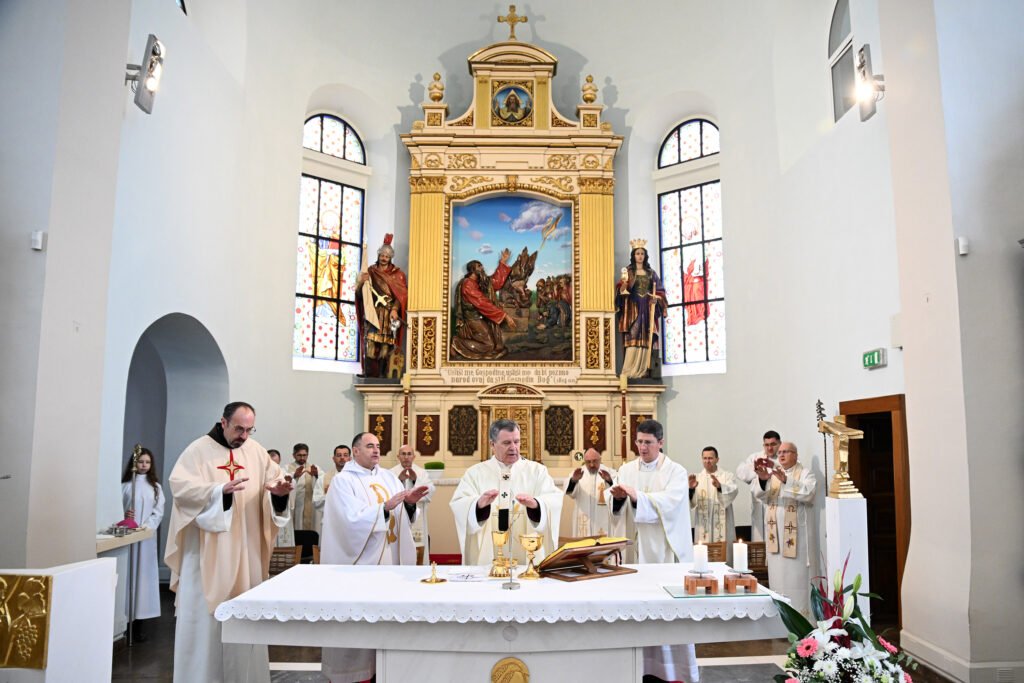 Svetu misu slavio je nadbiskup metropolit vrbosanski i apostolski upravitelj Vojnog ordinarijata u BiH mons. Tomo Vukšić u koncelebraciji s mons. Slađanom Čosićem, generalnim vikarom Vrhbosanske nadbiskupije i povjerenikom za katoličke školske centre, vlč. dr. Vlatkom Rosićem, ravnateljem Centra te drugim svećenicima, ravnateljima katoličkih centara i svećenicima zeničkih župa.