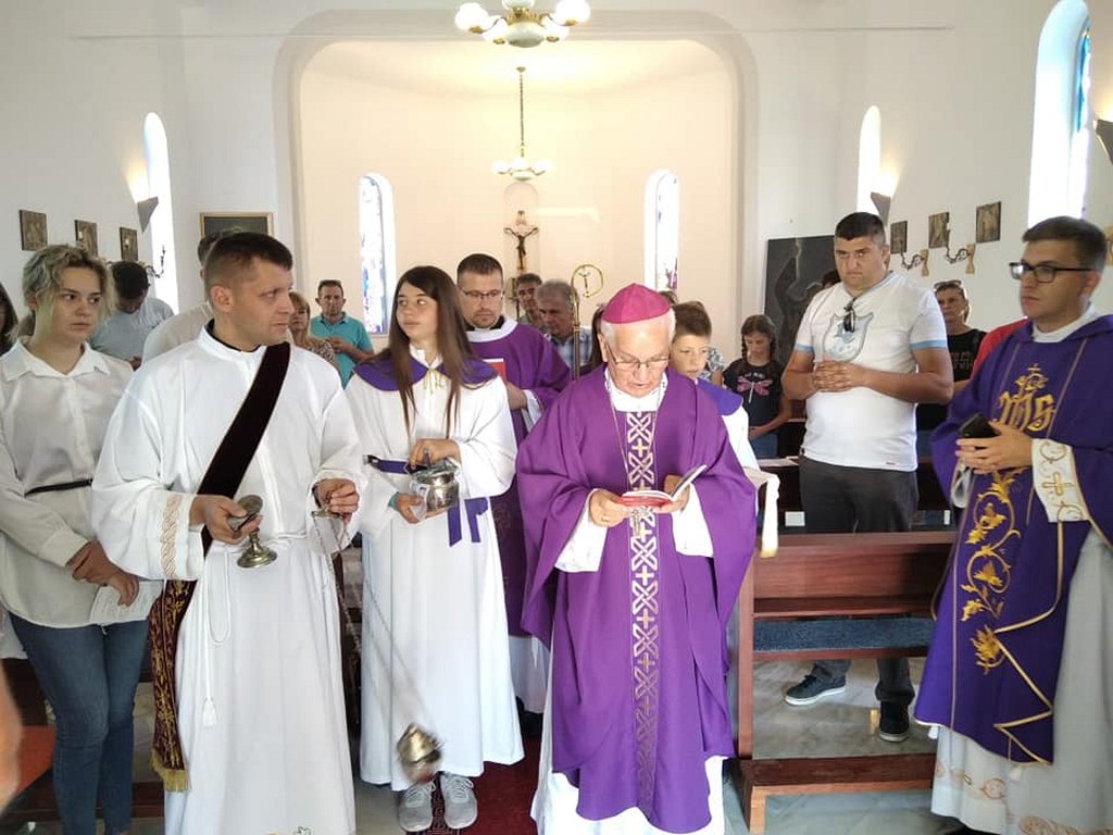 Na kraju sv. Mise biskup je izmolio molitvu odrješenja za duše svih ubijenih župljana, a nakon sv. Mise blagoslovio je vitraje, rad akademskog slikara Svetislava Cvetkovića iz Širokog Brijega, koji su postavljeni na prozorima crkve.