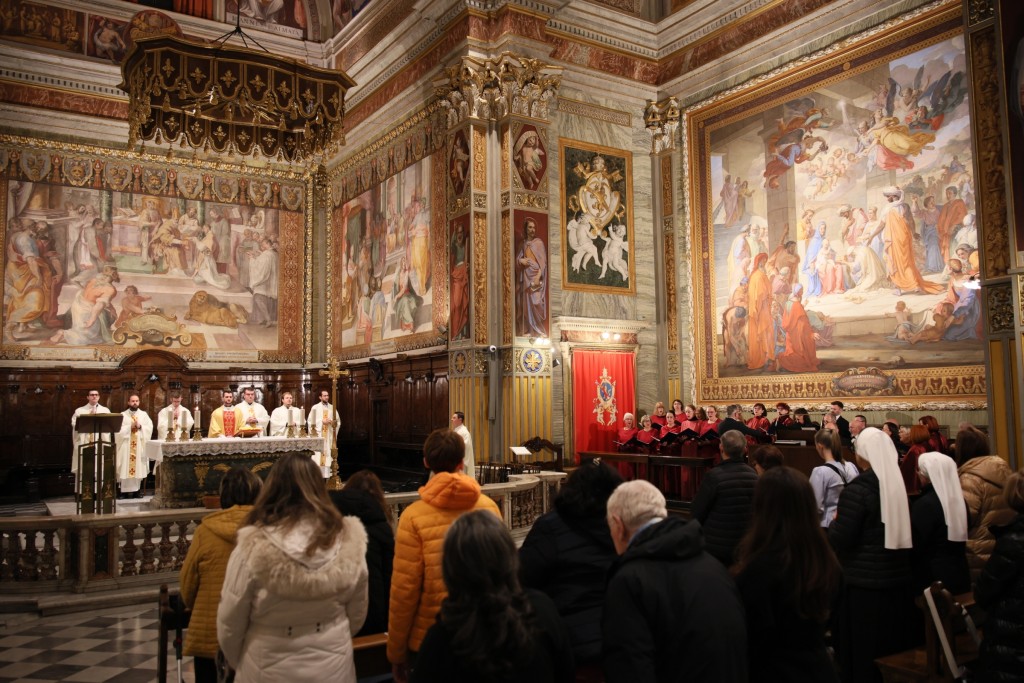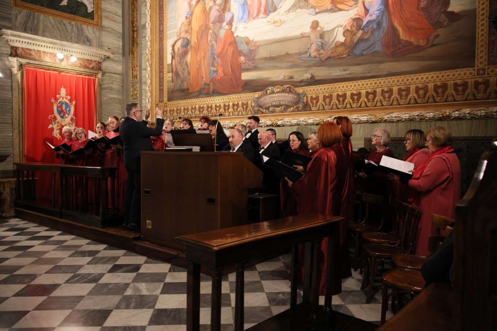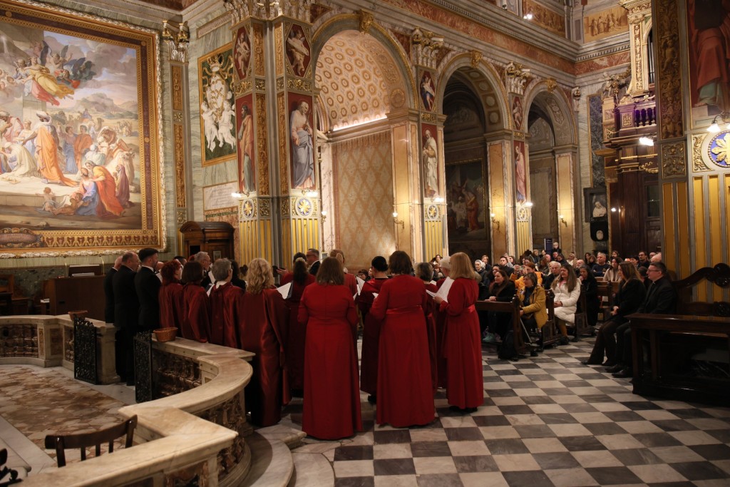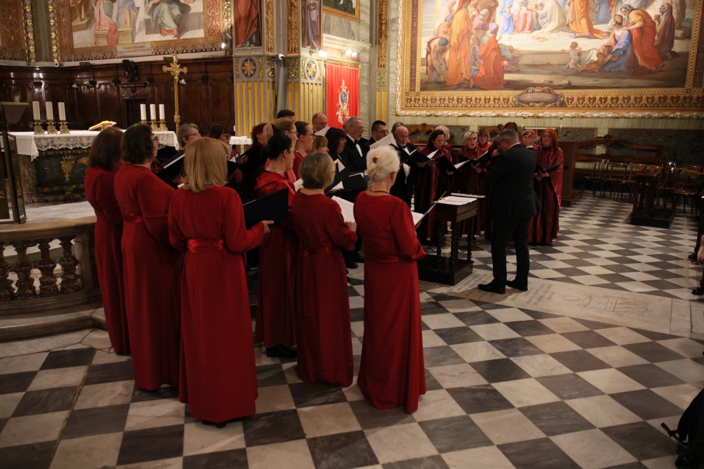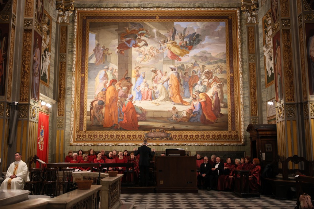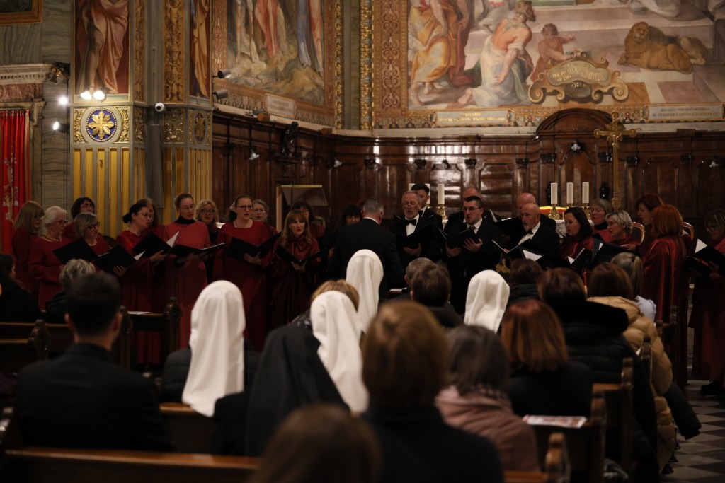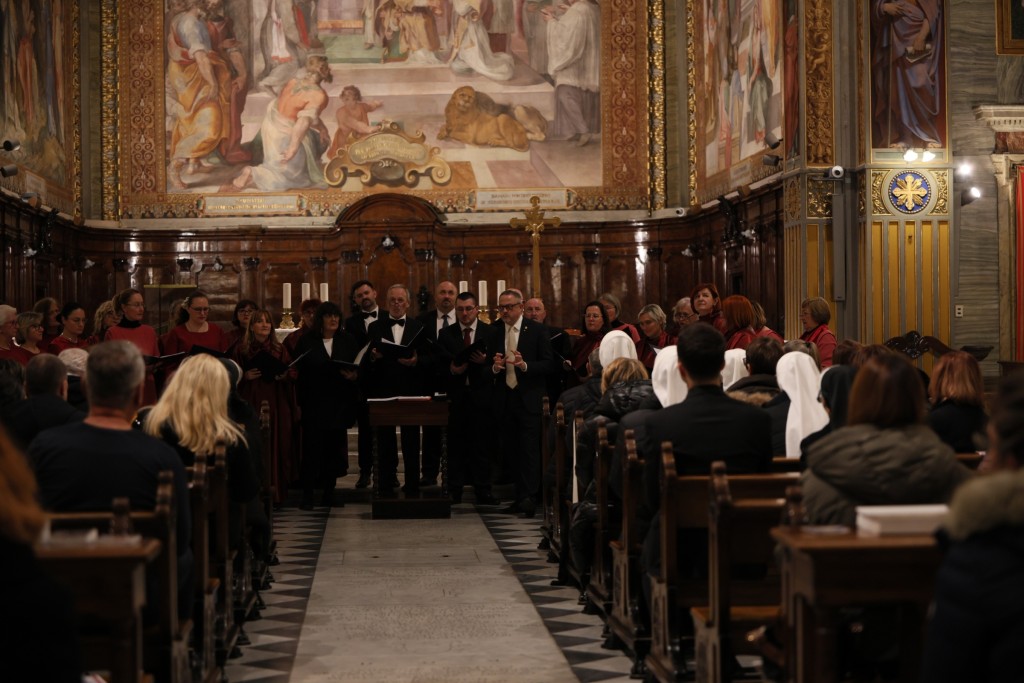 U Hrvatskoj crkvi sv. Jeronima u Rimu u nedjelju 23. studenoga na redovitoj večernjoj svetoj misi na hrvatskom jeziku, koju je predvodio vlč. Matej Siluković, svećenik Požeške biskupije i član Zavoda sv. Jeronima, pjevala su dva zbora iz Hrvatske: Mješoviti pjevački zbor „Emil Cossetto“ iz Zagreba i Hrvatsko pjevačko društvo „Slavulj“ iz Petrinje. Zajedničkim je zborom ravnao mo. Josip degl' Ivellio, dok je za orguljama svirao Nikola Sebastian Jambrošić. Zborovi su nakon svete mise u crkvi održali i kratki prigodni koncert.