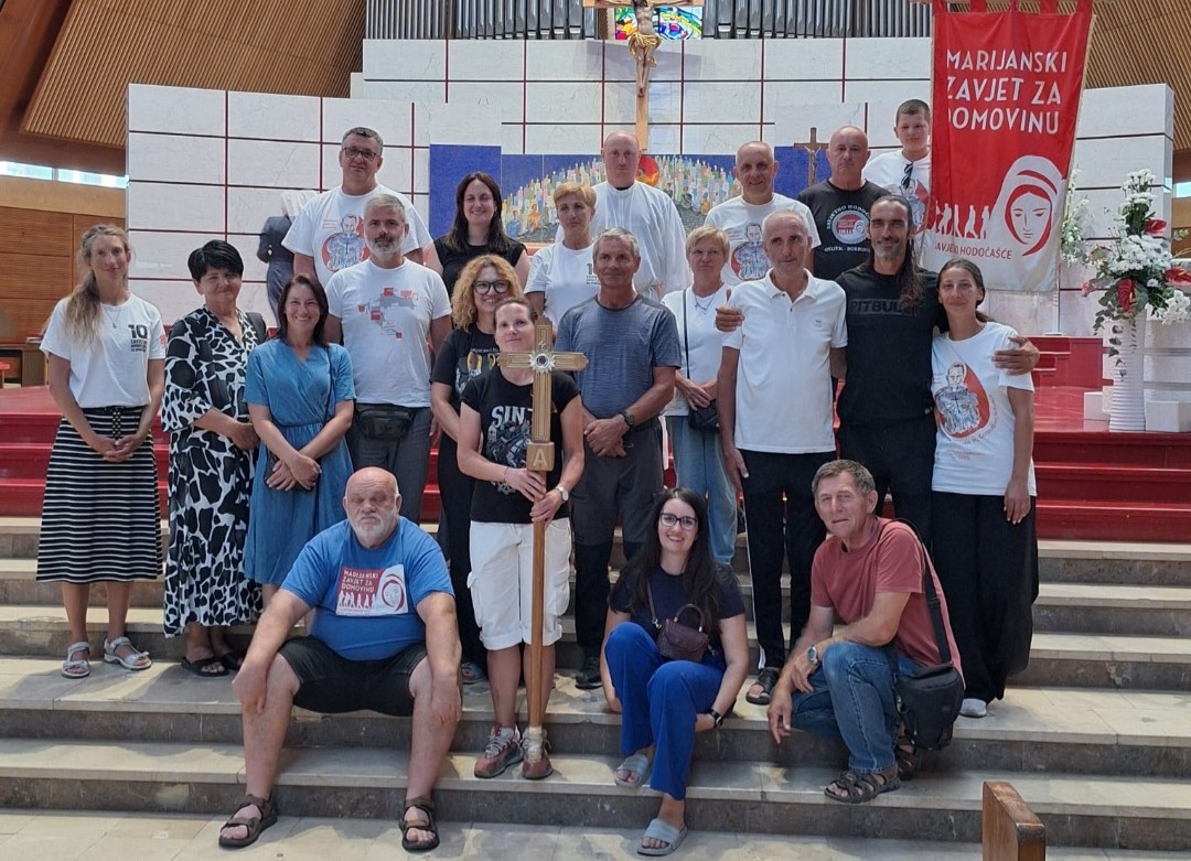 U Mostar je stiglo 27 hodočasnika koji su sudjelovali na večernjoj svetoj misi u 18 sati. Svetu misu u koncelebraciji katedralnoga župnika don Josipa Galića i don Mate Pehara predvodio je duhovnik hodočasnika p. Tomislav Rukavina, a za naš portal je rekao kako je „na poziv patra Ivana Mandurića došao tri dana hodati hodočašće Marijanskoga zavjeta za Domovinu. Ove godine posebnost Marijanskoga zavjeta je moćnik bl. Alojzija Stepinca, a nakana je posveta čitave Domovine Bogu. Hodnja je vrlo jednostavna, izmoli se cijeli Ružarij, postoji i vrijeme šutnje za osobnu molitvu, moguće su i svete ispovijedi jer je uz hodočasnike uvijek jedan svećenik, također i duhovni razgovori, a svi molimo za Domovinu, za narod, za sve ljude, za budućnost. Danas smo posjetili i Groblje mira na Bilima gdje smo molili za pokojne u čiju su čast ti križevi i podignuti, ali i za one koji su počinili te strašne zločine nad njima. Upravo to je ideja Marijanskoga zavjeta za Domovinu – da se molimo za nju, za sve ljude koji u njoj žive kako bi konačno nastao mir među ljudima i u ljudima.