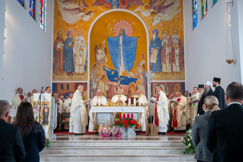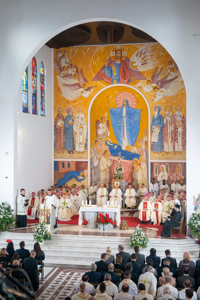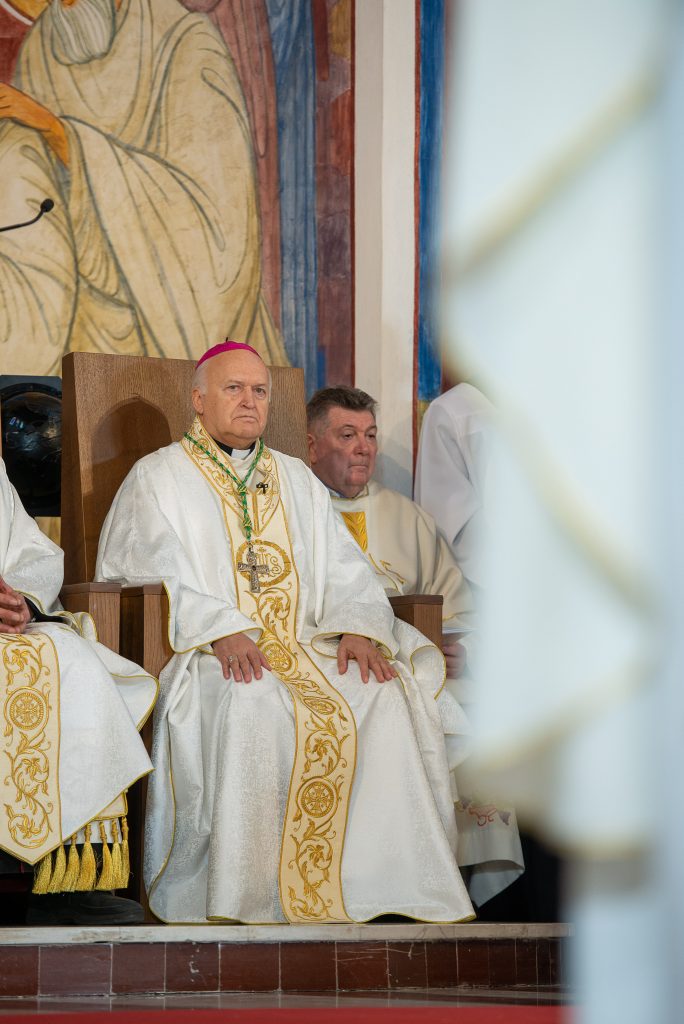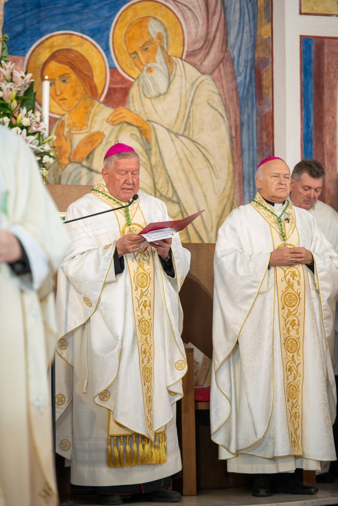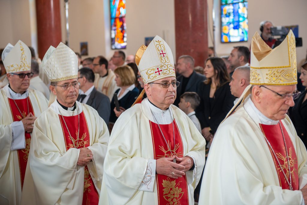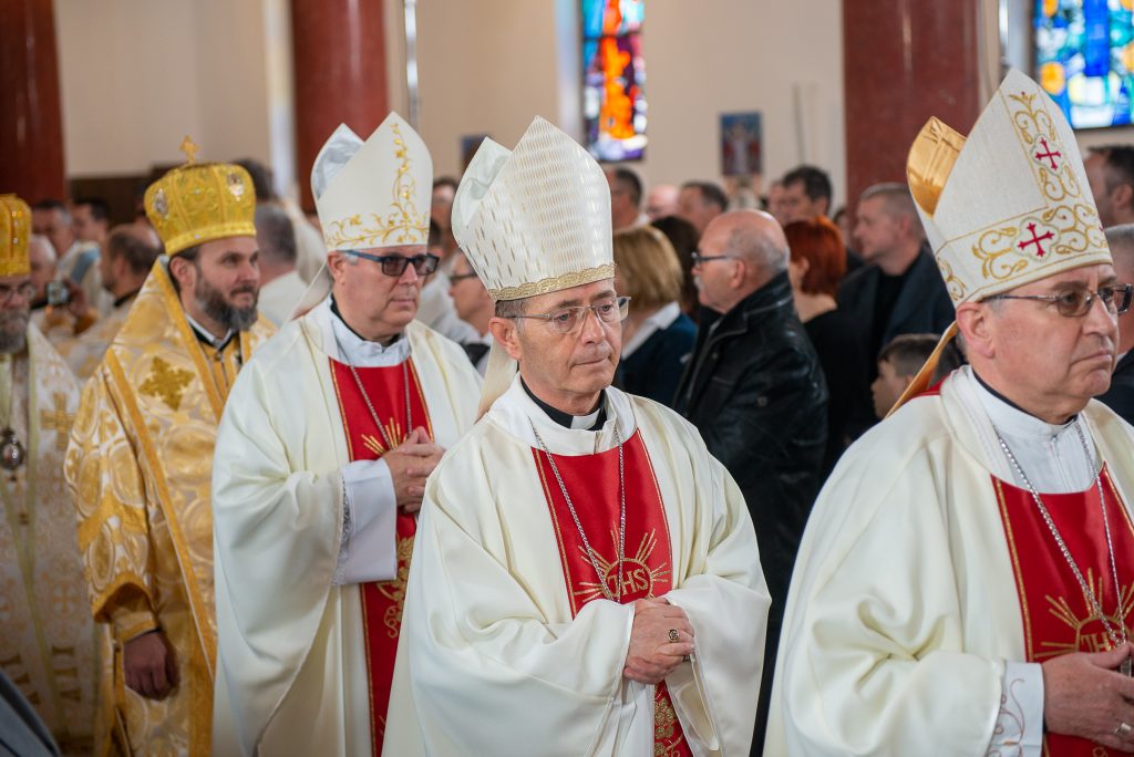 Uz dvojicu nadbiskupa svečanu Euharistiju suslavili su: apostolski nuncij u Republici Srbiji mons. Santo Rocco Gangemi, nadbiskup Ostrogona-Budimpešte kardinal Péter Erdő, predsjednik Vijeća europskih biskupskih konferencija i nadbiskup Vilniusa mons. Guintaras Grušas, predsjednik Hrvatske biskupske konferencije mons. Dražen Kutleša, splitsko-makarski nadbiskup metropolit, predsjednik Biskupske konferencije Bosne i Hercegovine mons. Tomo Vukšić, nadbiskup metropolit vrhbosanski i apostolski upravitelj Vojnog ordinarijata u BiH, te četrdesetak (nad)biskupa zapadnog i istočnog obreda Katoličke Crkve iz Srbije, Hrvatske, Bosne i Hercegovine, Crne Gore, Mađarske, Poljske, Litve, Albanije, Rumunjske i drugih zemalja iz okruženja te osamdeset svećenika.